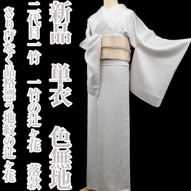 tomihisa 新品 単衣 二代目一竹 一竹の辻ヶ花 落款 着物 正絹 仕付け糸付”さりげなく品格漂う、地紋の辻ヶ花”色無地 5990