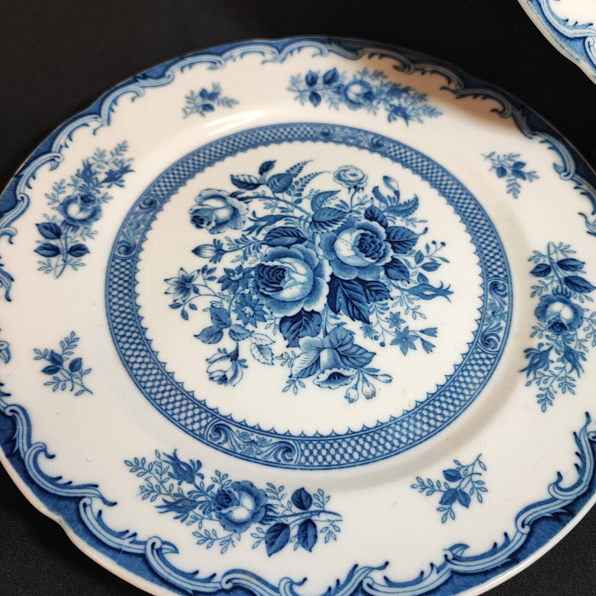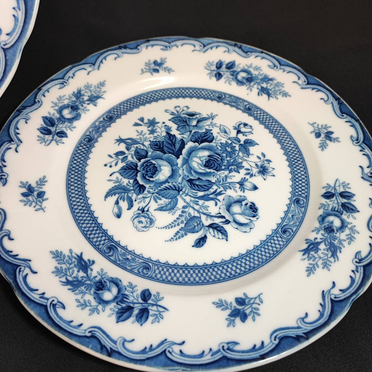 こちらは「Blue Rose ブルーローズ」のヴィンテージプレート皿3枚セットです。クラシカルなブルーローズの絵柄が中央と縁に描かれ、落ち着きと気品のあるデザインが特徴です。Fine Chinaの繊細な質感と花柄装飾が美しく、食卓を彩るだけでなく、インテリアやディスプレイとしてもお使いいただけます。年代物のため現在は製造されておらず、コレクターズアイテムとしても人気です。