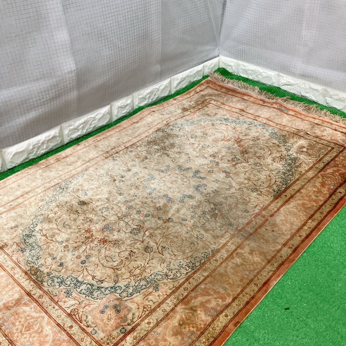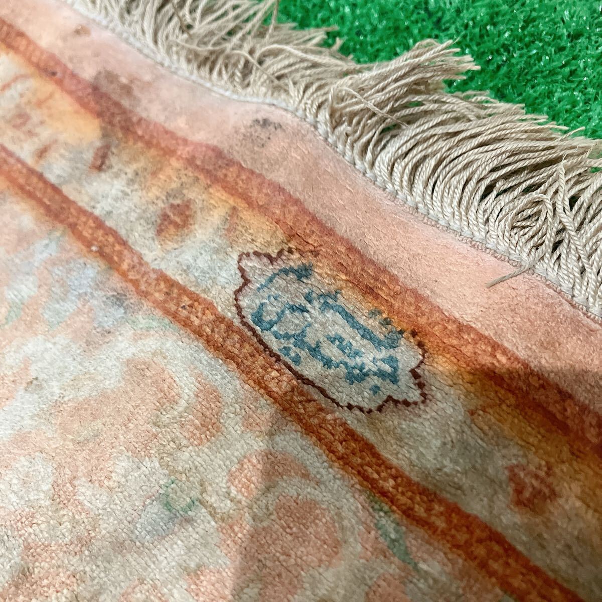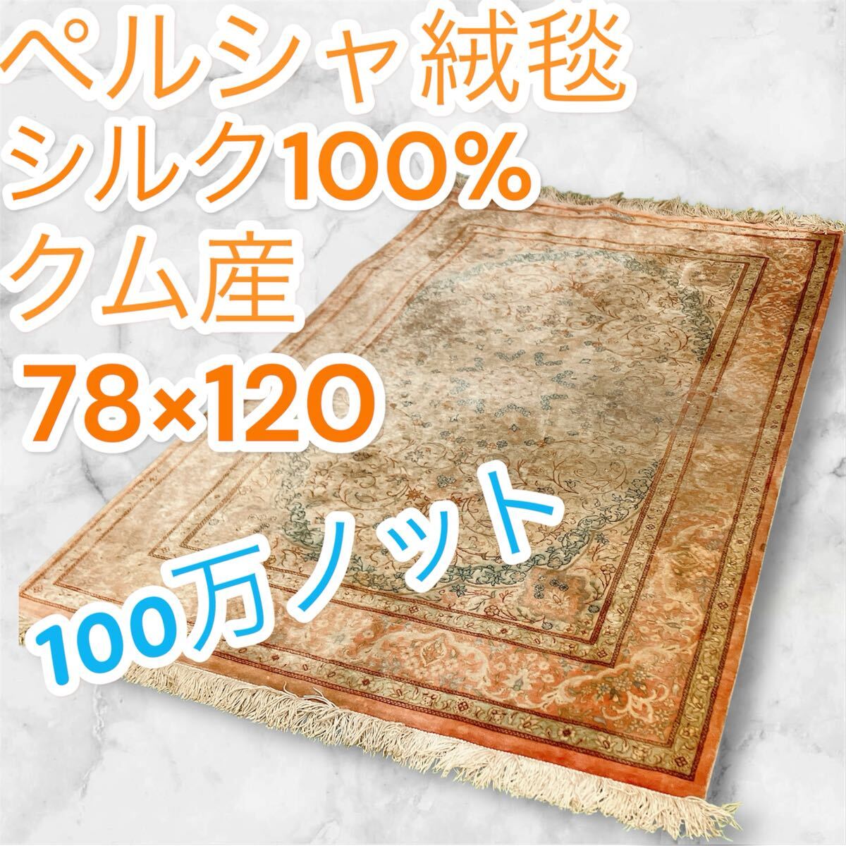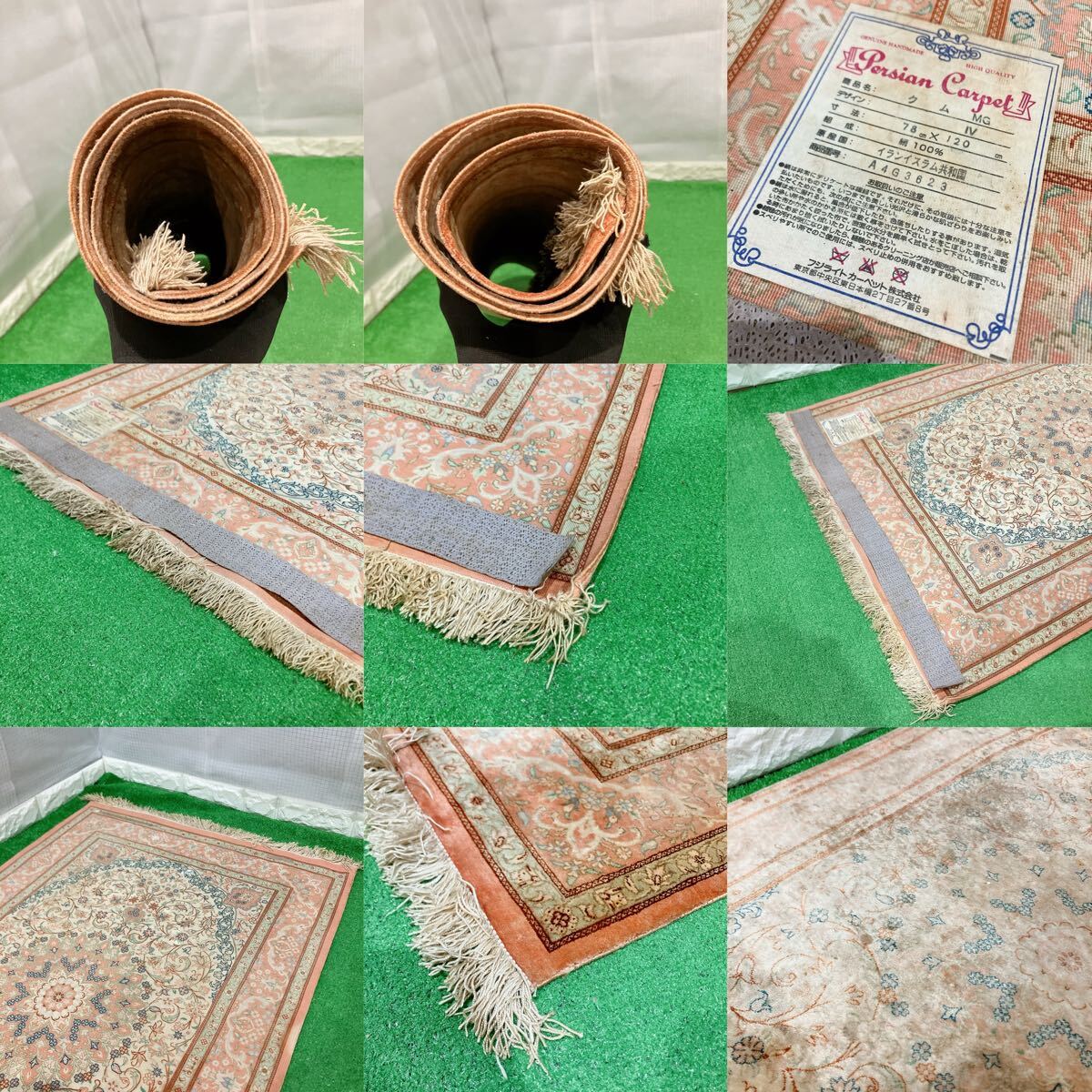 真贋済み ペルシャ絨毯 クム産 玄関マット ラグ イラン 手織り サイン入り カーペット 高級