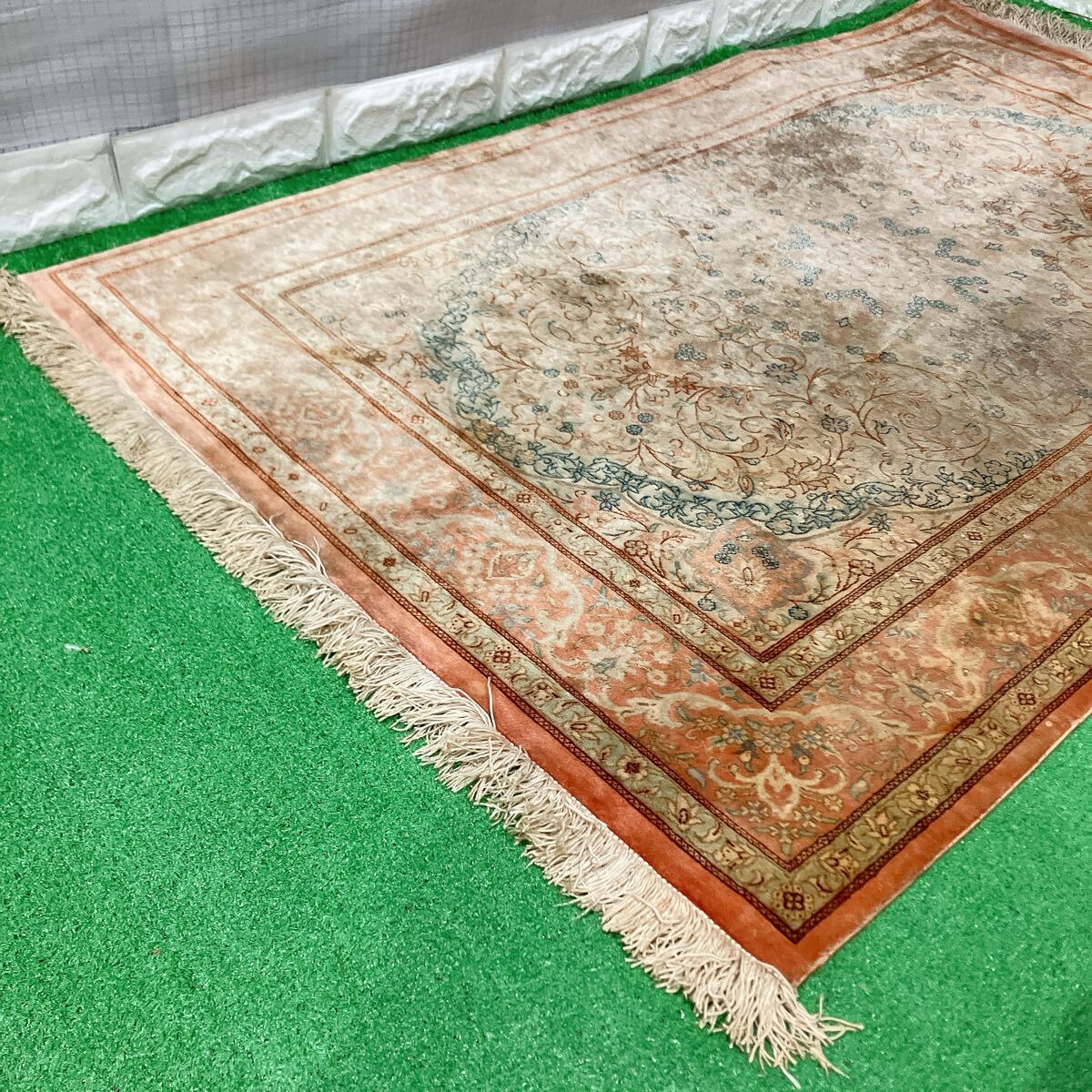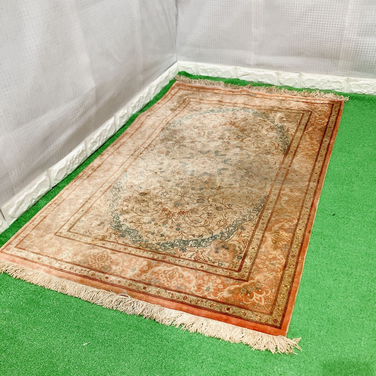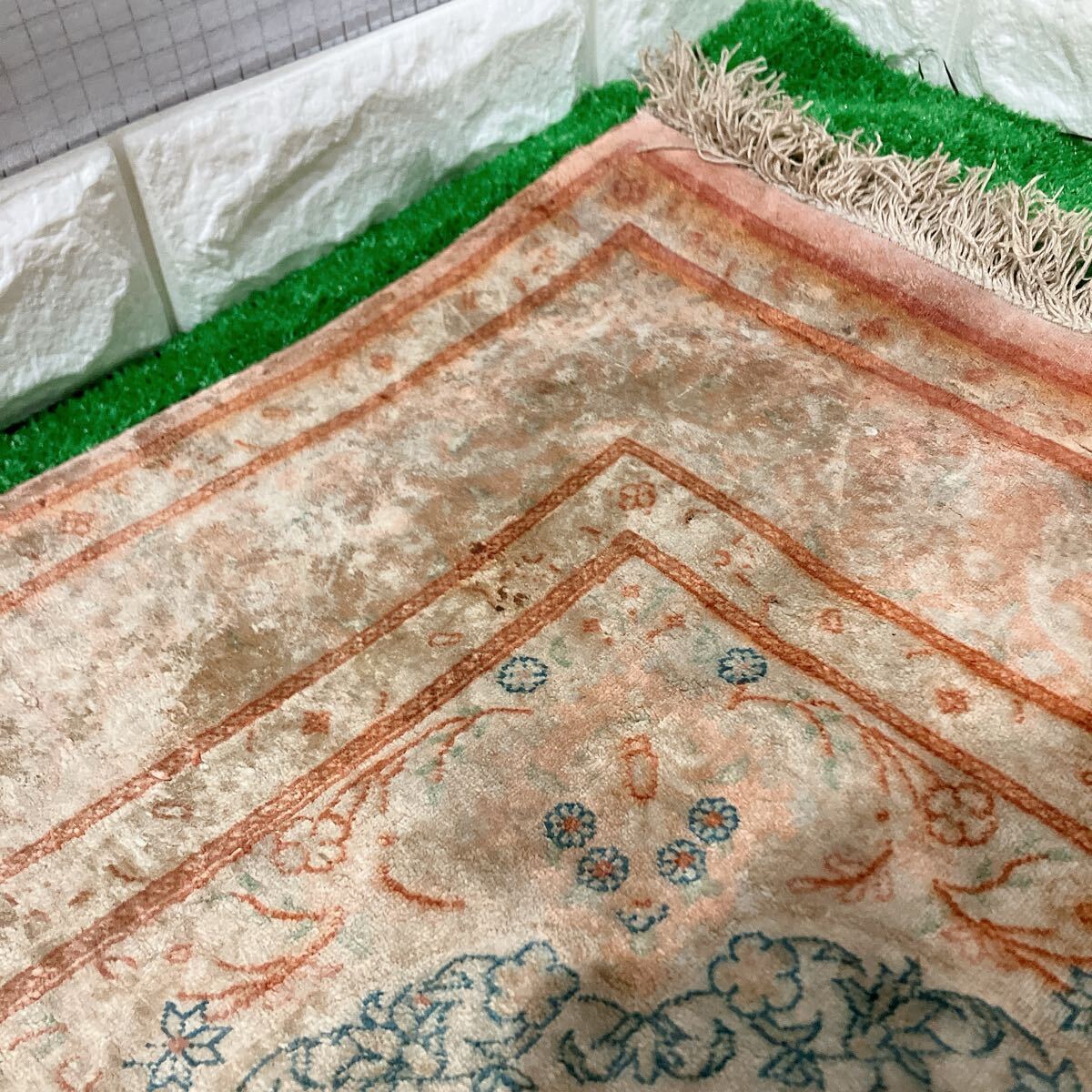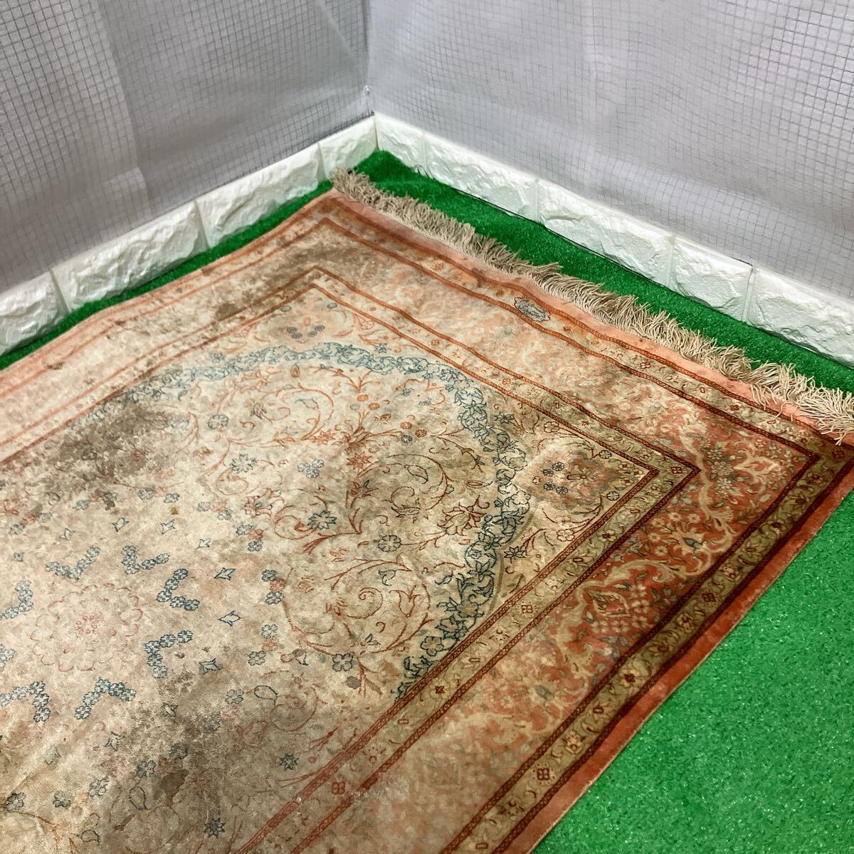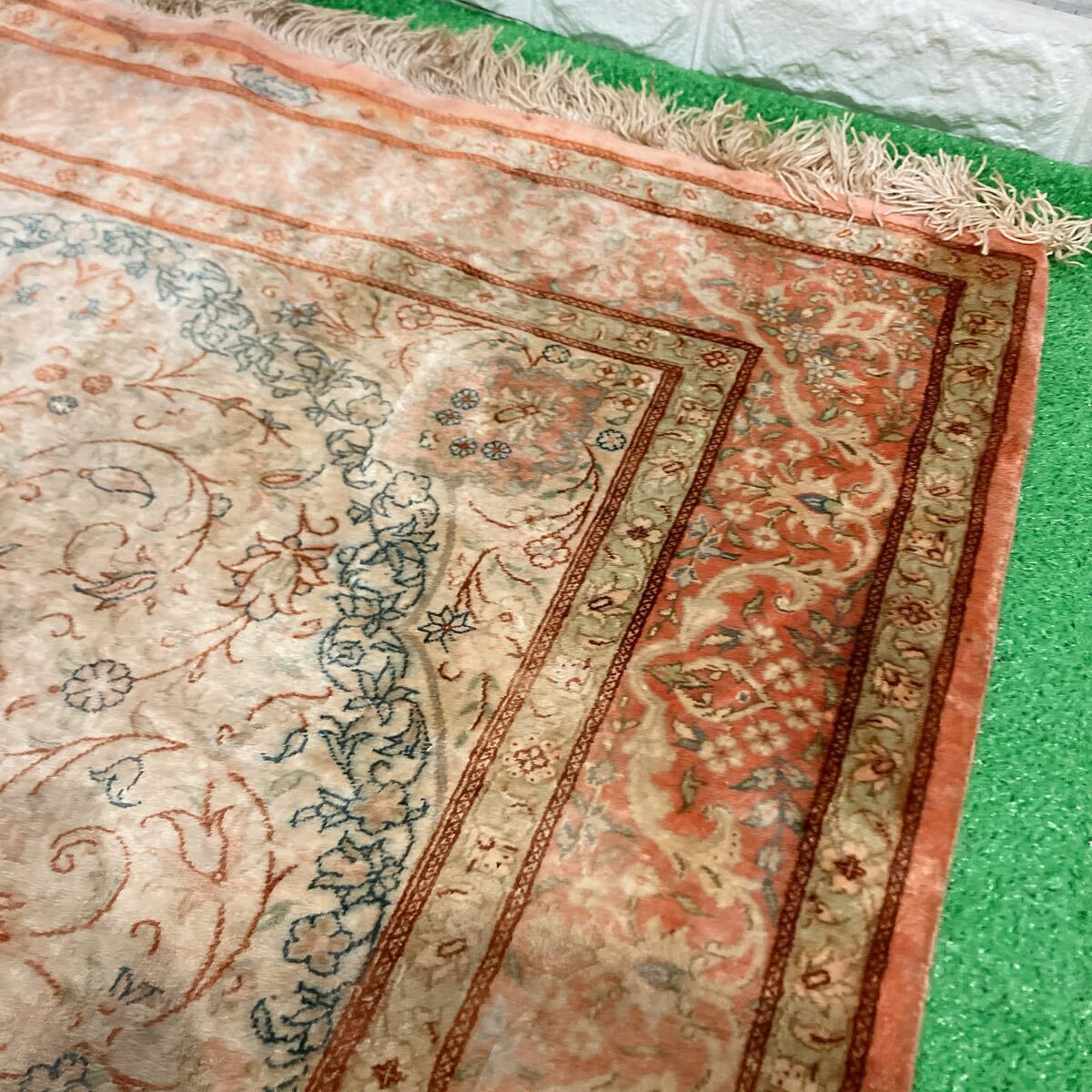 真贋済み ペルシャ絨毯 クム産 玄関マット ラグ イラン 手織り サイン入り カーペット 高級