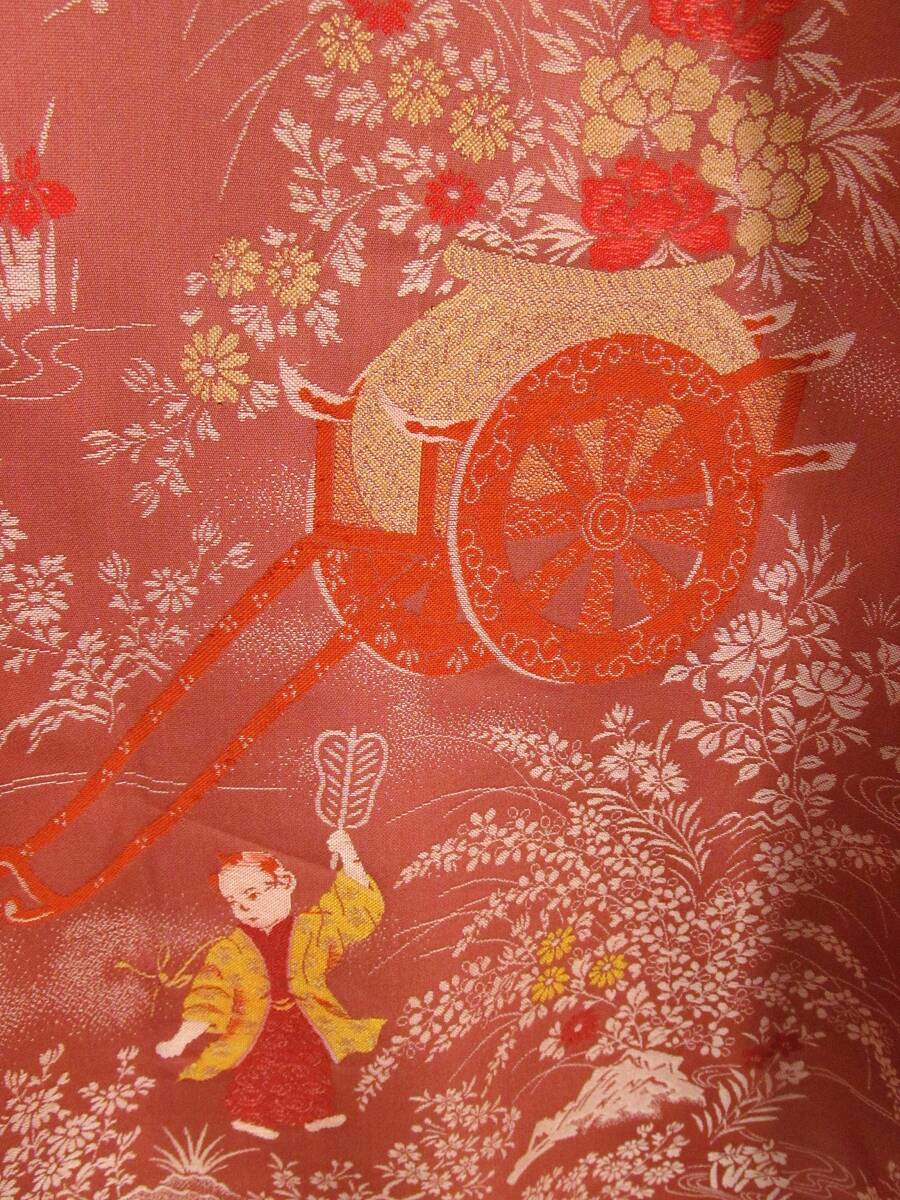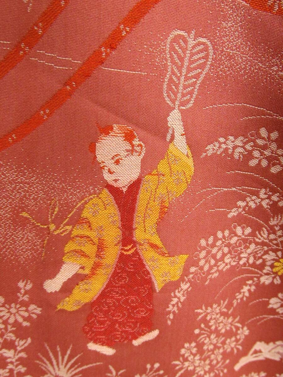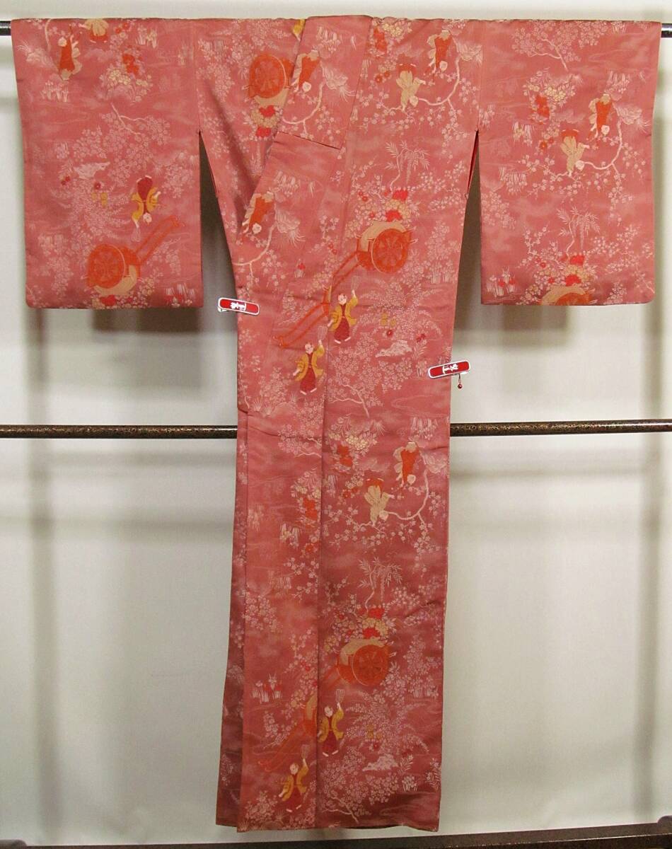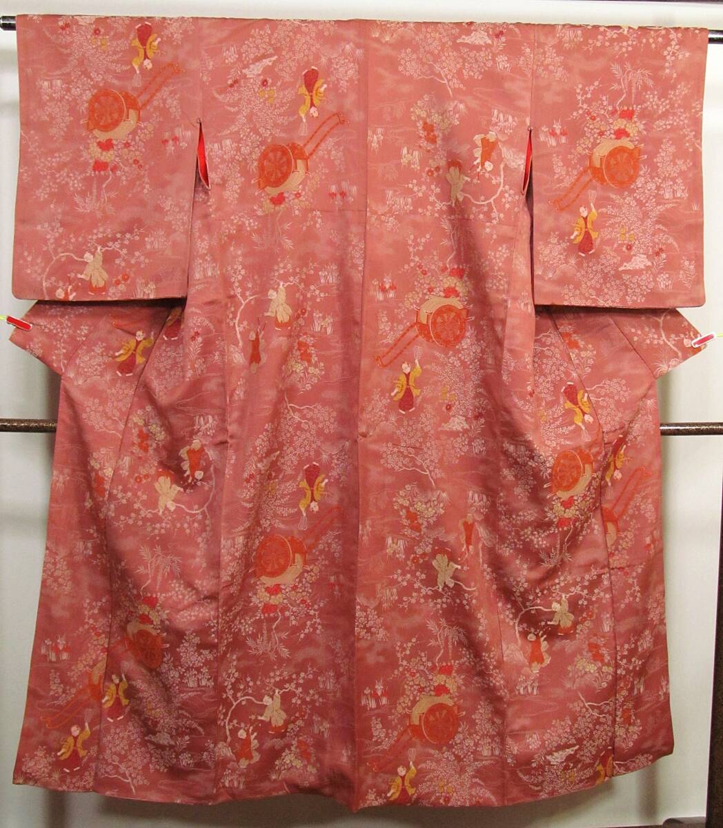 の21 正絹 アンティーク お召着物 花車唐子柄 身丈149cm