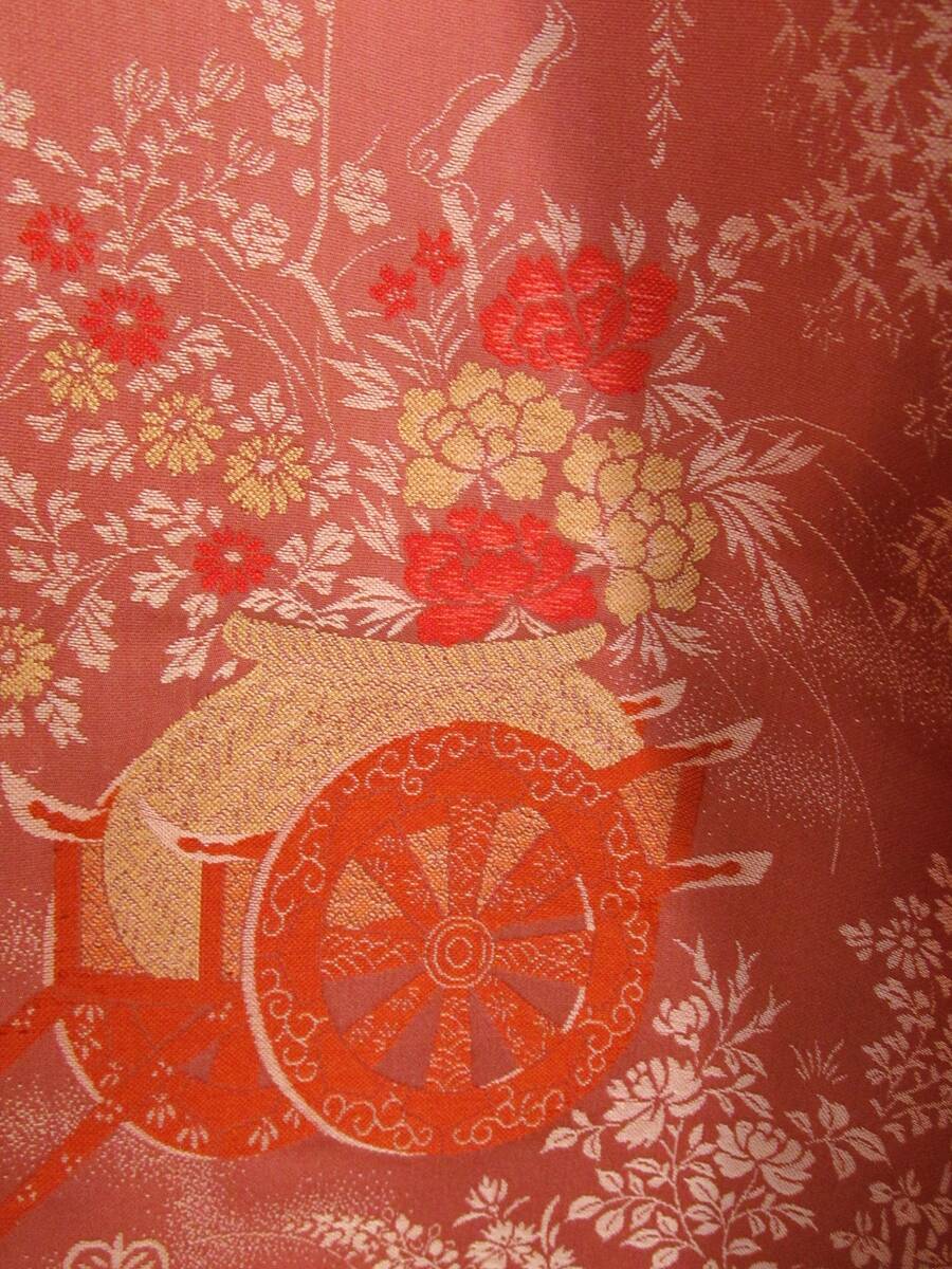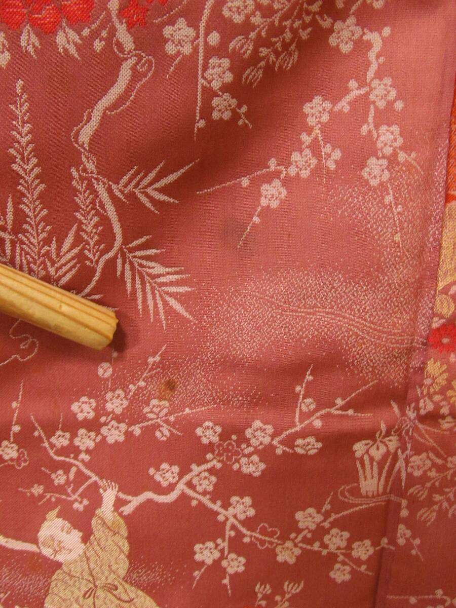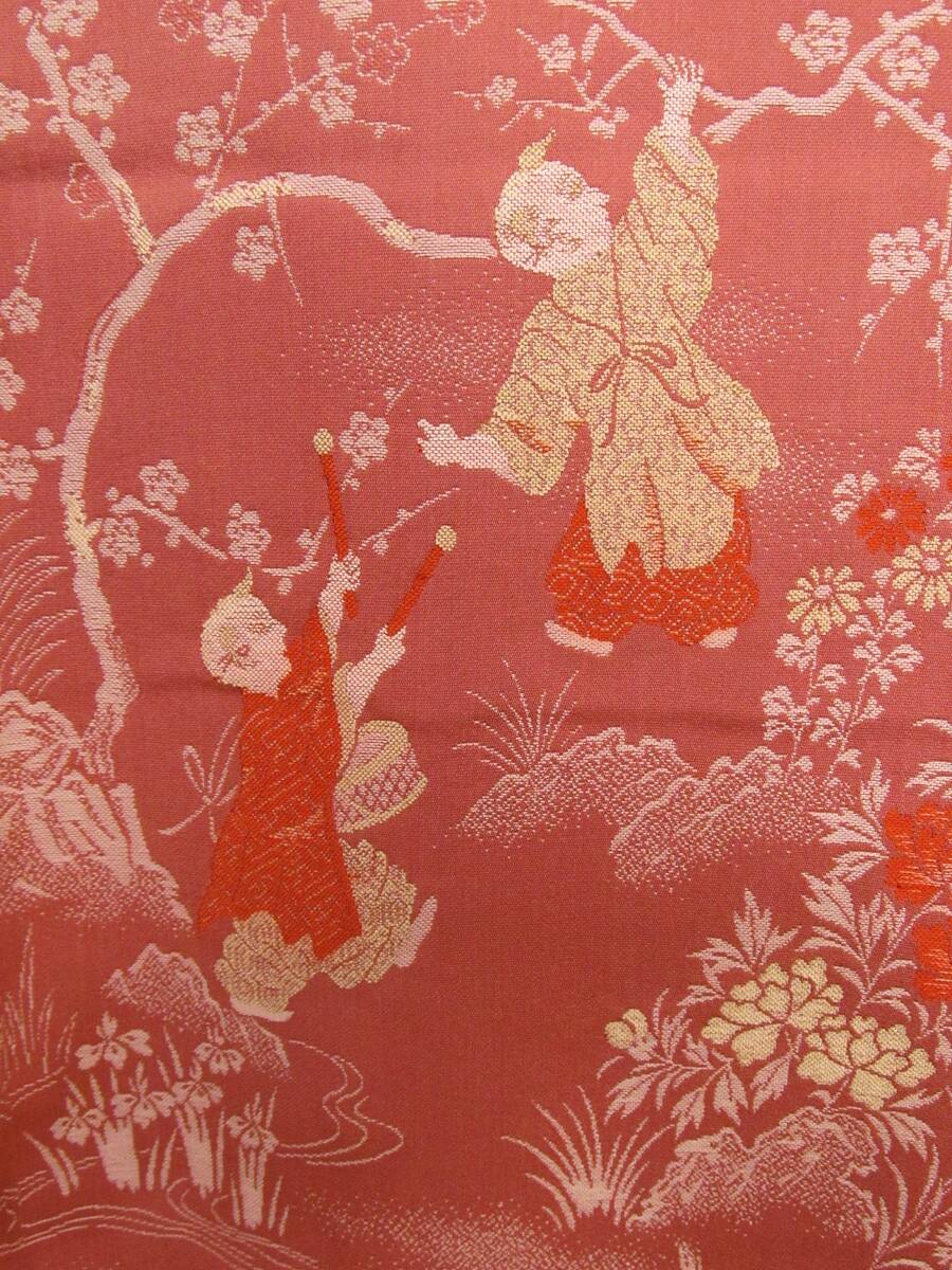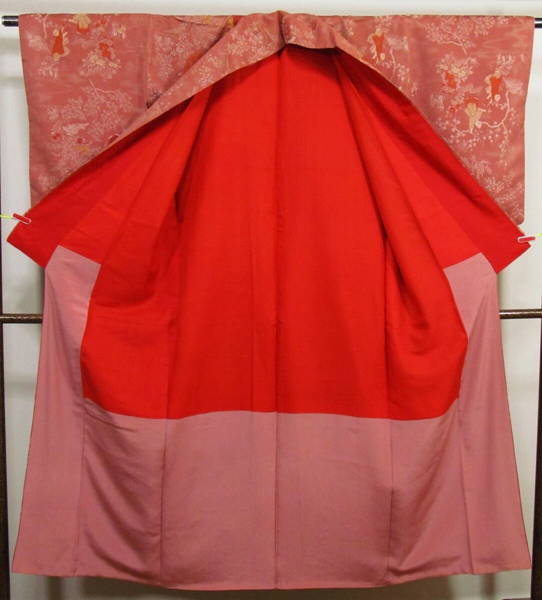 の21 正絹 アンティーク お召着物 花車唐子柄 身丈149cm