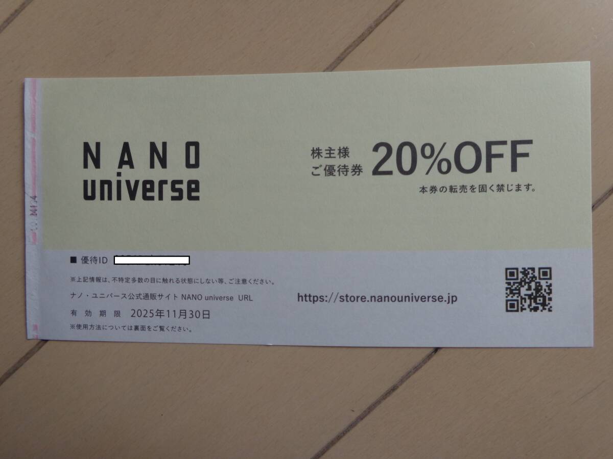 1.ナノユニバース 20%OFF券 1枚 (株主様ご優待券) (TSIホールディングス 株主優待券)