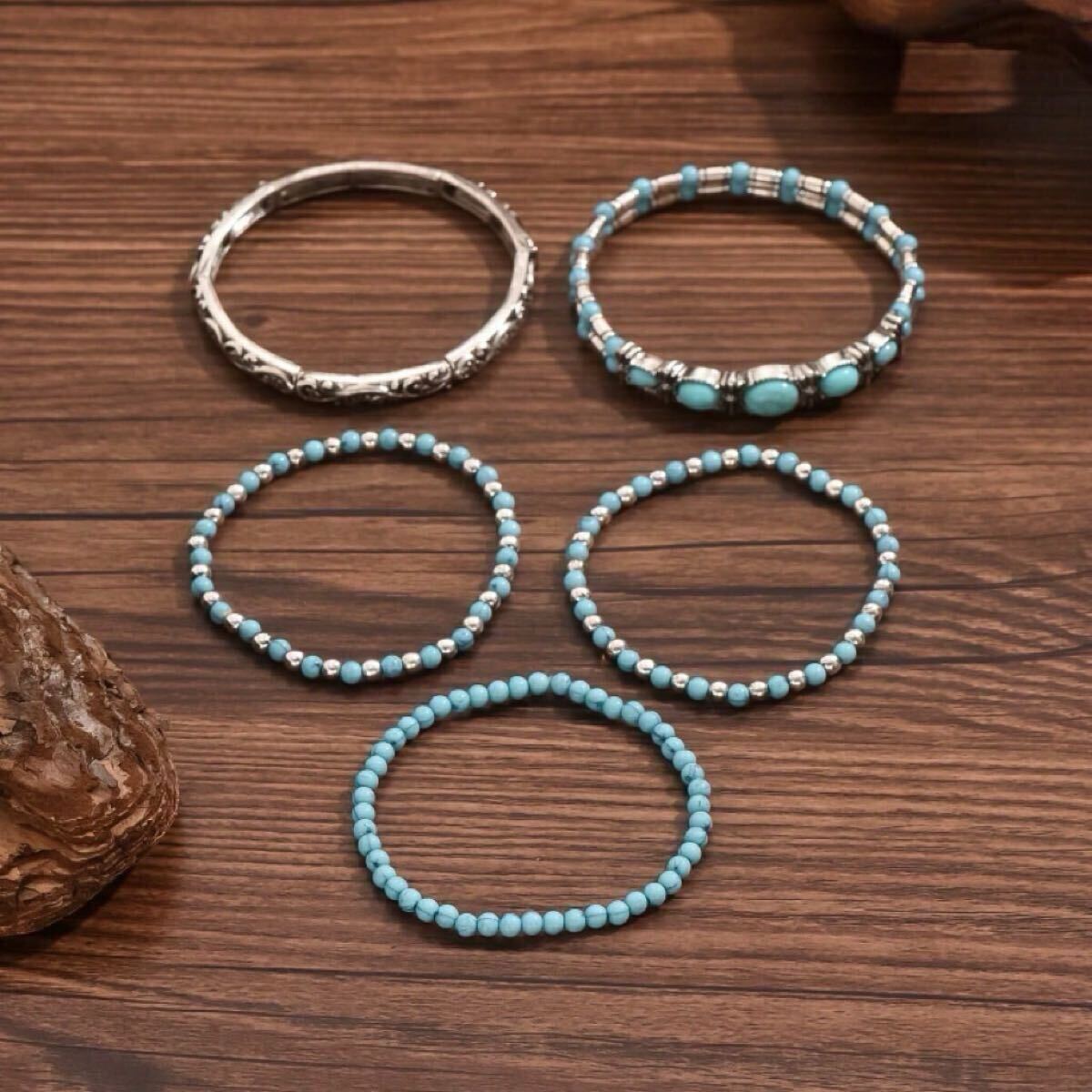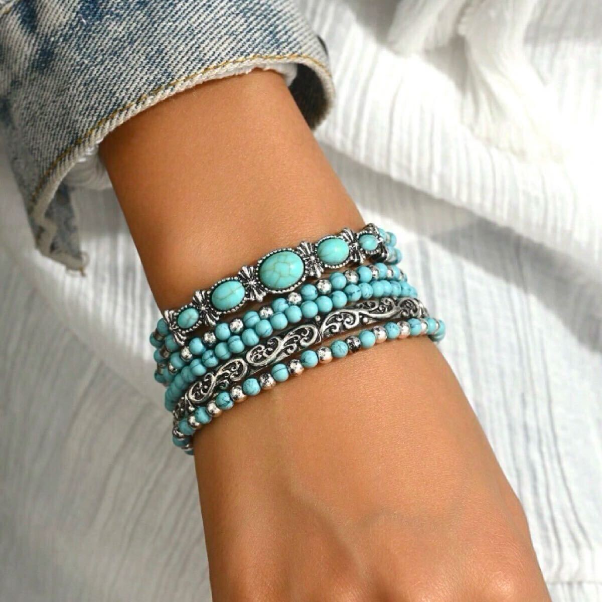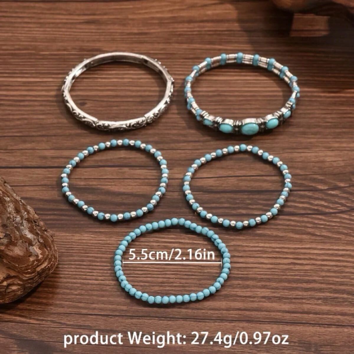ヴィンテージ風 フェイク ターコイズ ナバホ ブレスレット 5個セット インディアンジュエリー