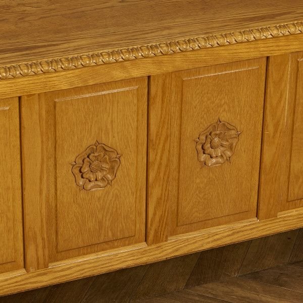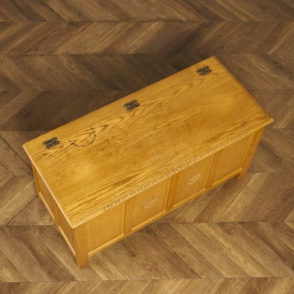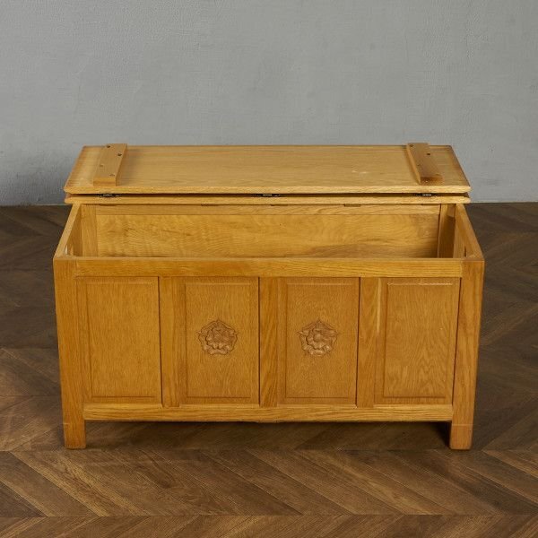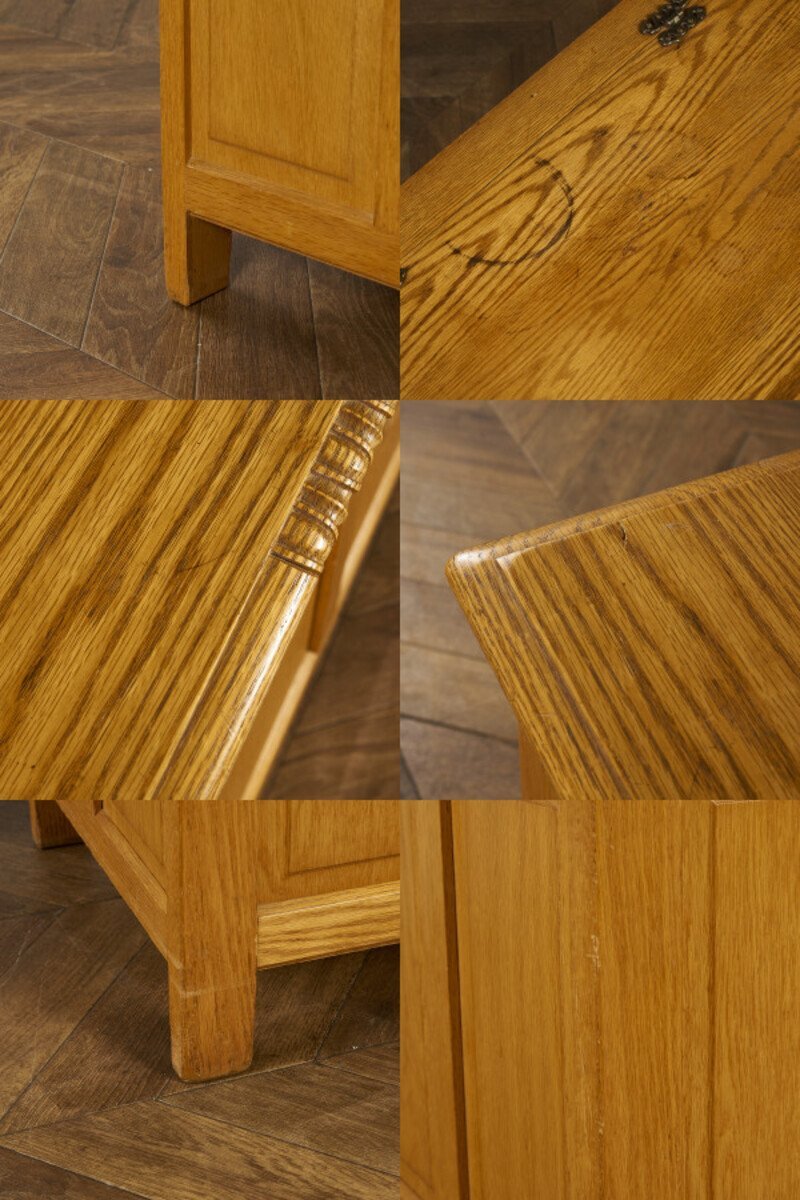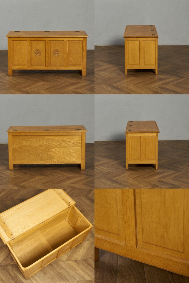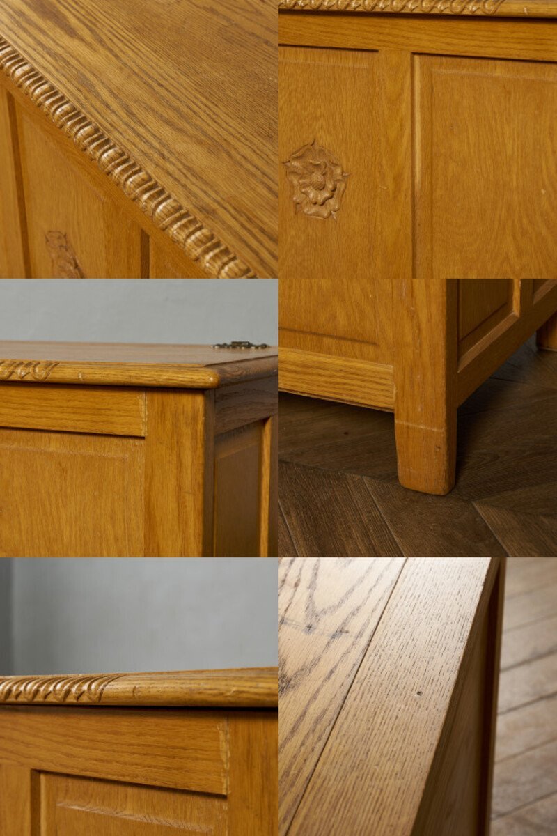 英国クラシック オーク材 ブランケットボックスです。 力強い木目のオーク材を用い、英国伝統様式を忠実に再現。布物の収納やおもちゃ箱としての使用はもちろん、センターテーブルとしても活躍します。木彫装飾がアクセントになったシックなデザインが魅力です。オーク材ならではの心地よい温もり、風合いが素朴で優しい雰囲気を演出します。 |