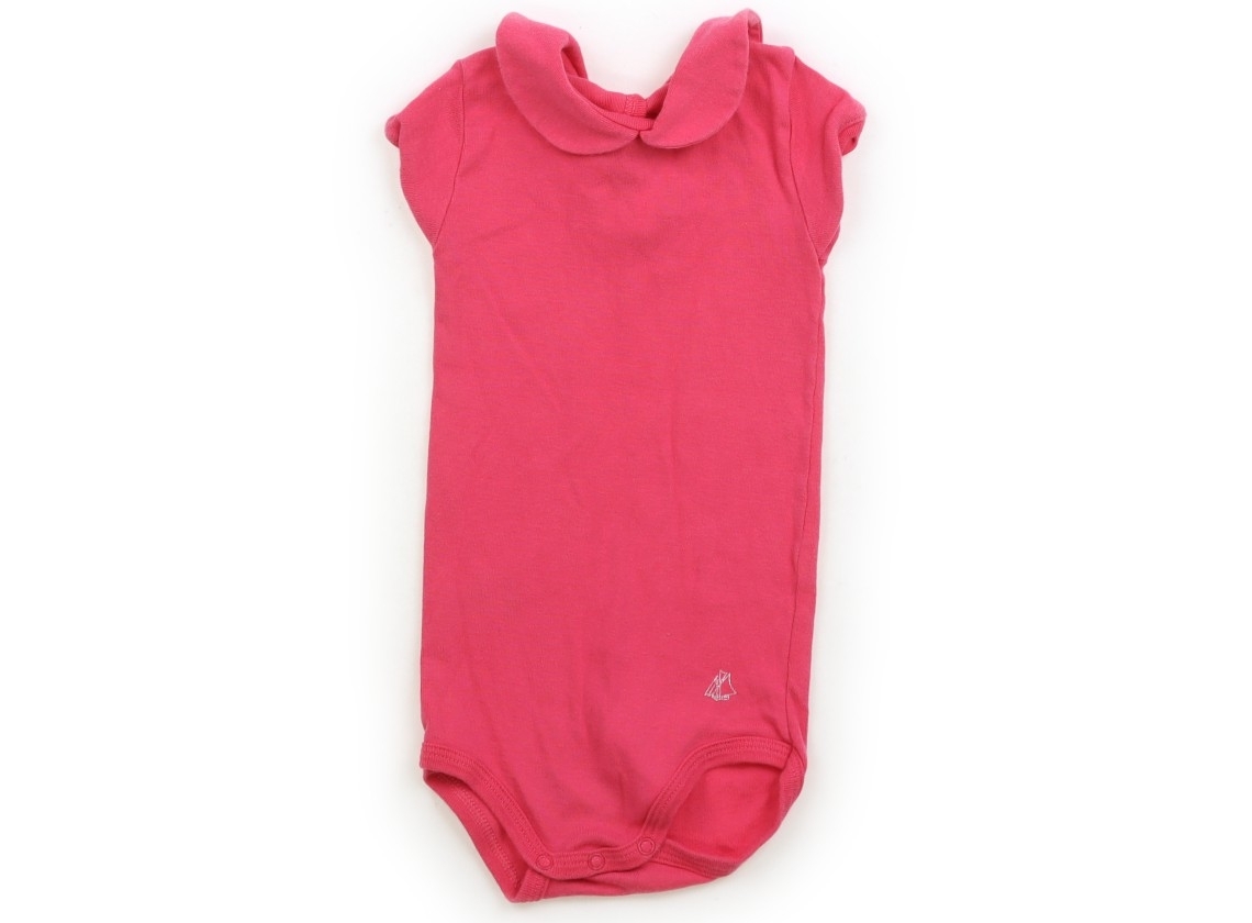 実際のサイズ表記は12m/74cm。綿カットソー地。全体に色あせ・毛羽立ちに伴う白っぽさが見られます。背中に汚れあり。洗い替え用にいかがでしょうか。
