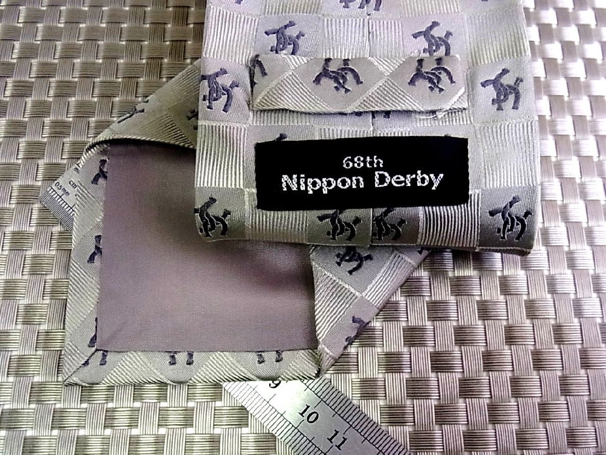 ♪k03036C♪良品【JRA 競馬】68th 日本ダービー【蹄鉄 格子柄】ネクタイ
