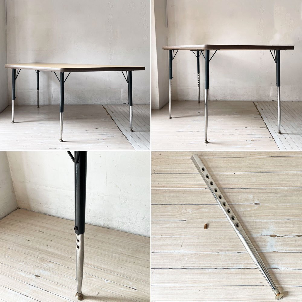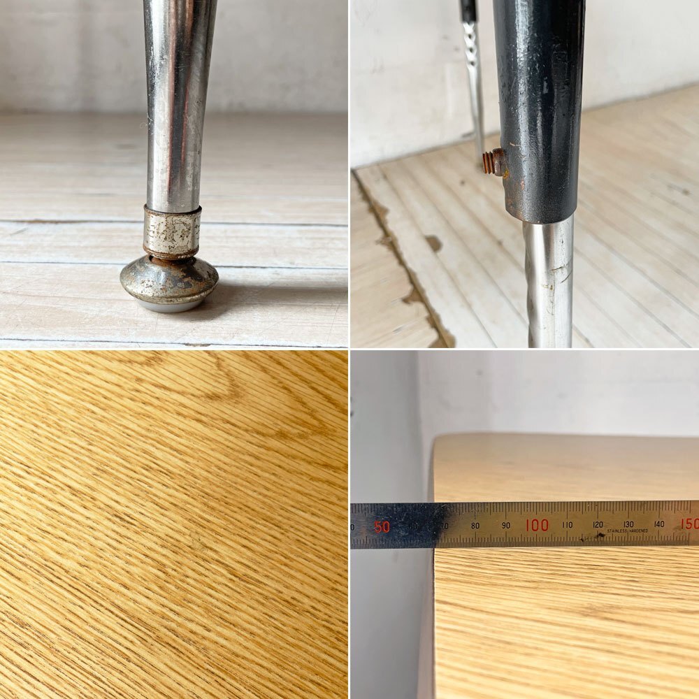 | コンディション | こちらはビンテージアイテムとなります。 経年に伴い、擦れや傷、色ムラ、縁には僅かな削れやくすみ、脚部には素材特有のくすみと錆が見受けられますが風合いとして楽しんで頂けると思います。 また、天板の端部分に若干の反りがございますがその他、割れやがたつきなど使用に問題となる大きなダメージは見られず、ビンテージアイテムとして良好なコンディションを保っていると言えます。 ※脚部の高さ調整をする際、US規格の六角レンチまたは、星形レンチ(どちらも6mm)にてボルトを取り外し可能です。 ※特筆すべきコンディションは出来るだけ記載させて頂きますが、細かい擦れや傷、汚れ等を完全にお伝えする事は出来ません。画像をご確認の上、ご入札をご検討下さいませ。 ※取扱説明書や保証書等は記載が無い限り付属いたしません。 |
