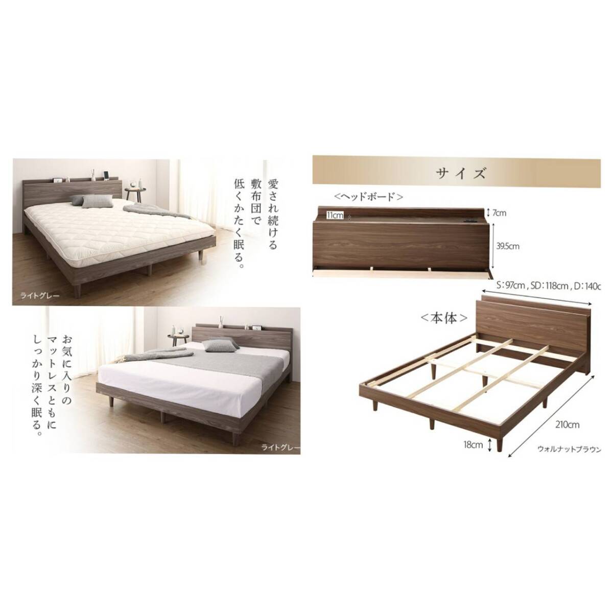【注意】マットレスや布団は付きません(フレームのみの販売です)