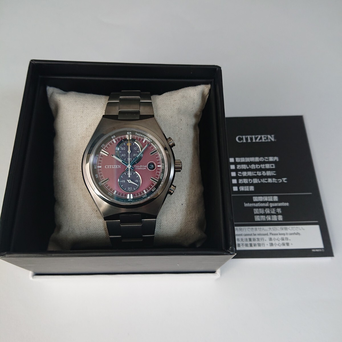 海外モデル 未使用 シチズン CA7090-87X チタン クロノグラフ 赤 エコドライブ ソーラー