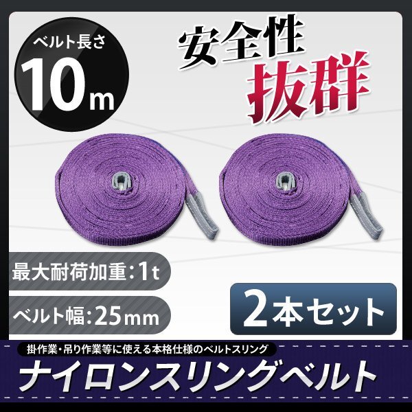 【送料無料】◆2本セット◆ ナイロンスリングベルト10m×1000kg(1t)×25mm ★荷揚げ 吊り上げ 吊り下げ 玉掛け運搬に!
