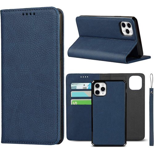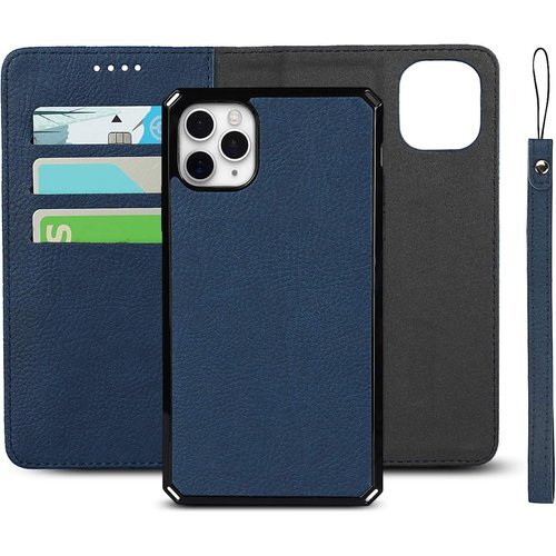アイフォン 11 Pro Max ケース 手帳型 for iPhone 11promax 財布型 分離式 両用 2way 取り外し自由 カバー 縄掛け 高PUレザー+TPUソフト ケース 二合一の設計 ICカード ベルトマグネット -ネイビー