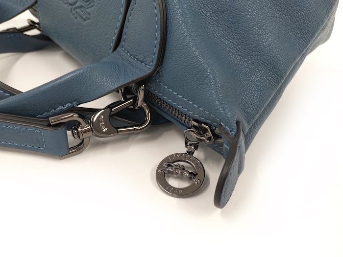 ◆商品情報 | ・カラー:ブルー ・素材/ライン:レザー ・サイズ:最大約 W25×H14×D11(cm) ・ショルダーの長さ:最大約102(cm) ※多少の誤差はご了承下さい。 ・内側:オープンポケット×1 ファスナーポケット×1 |