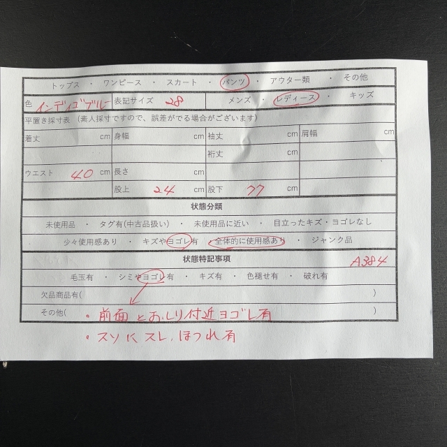 ・シミやヨゴレ有(前面とおしり付近ヨゴレ有)