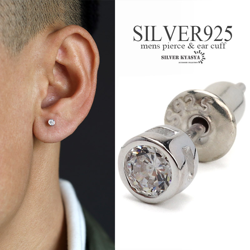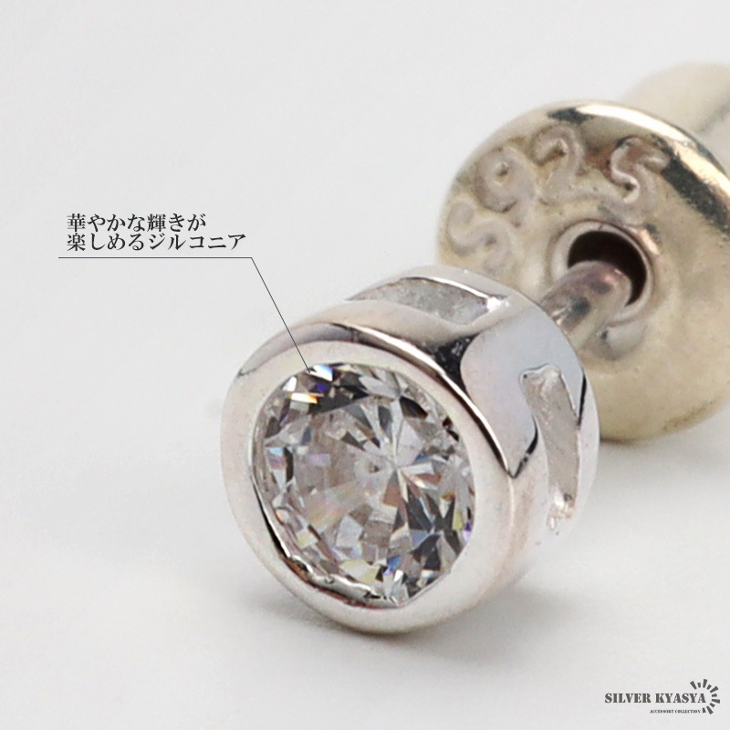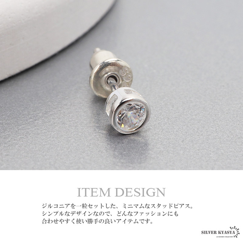 シルバー925 一粒ピアス スタッドピアス キラキラ ジルコニア silver シルバーピアス 金属アレルギー 対応 片耳用