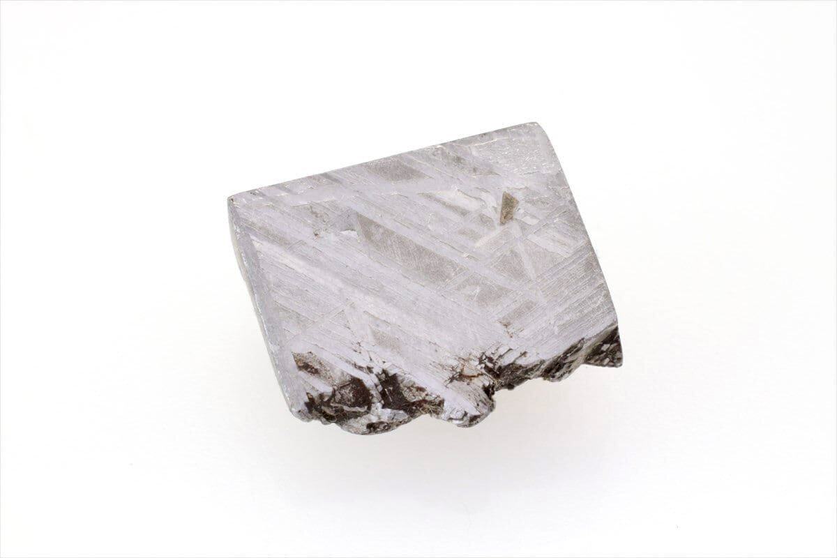 オクタヘドライトという名前はテーナイトの結晶格子の角にカマサイトが成長し八面体(オクタへドロン)構造になることに由来しており、酸処理を施すとカマサイトよりも酸に溶けにくいテーナイトが浮かび上がり特徴的な模様のウィドマンシュテッテン構造が現れます。ウィドマンシュテッテンとは構造を一番初めに論文として発表したカウント・アロイス・フォン・ウィドマンシュテッテン氏からきています。