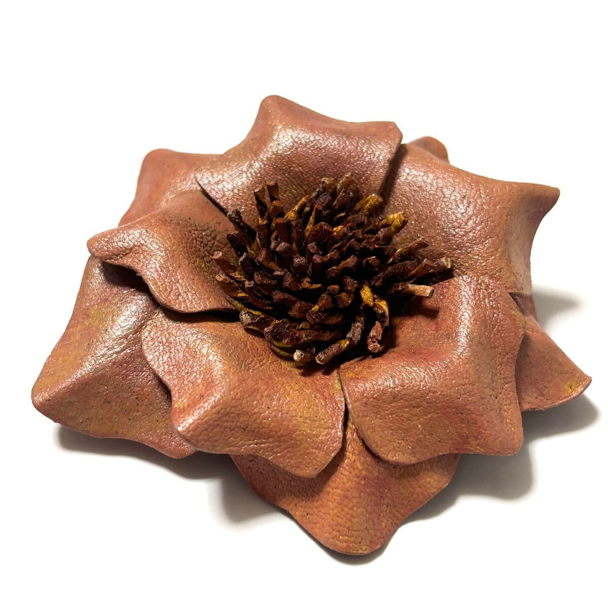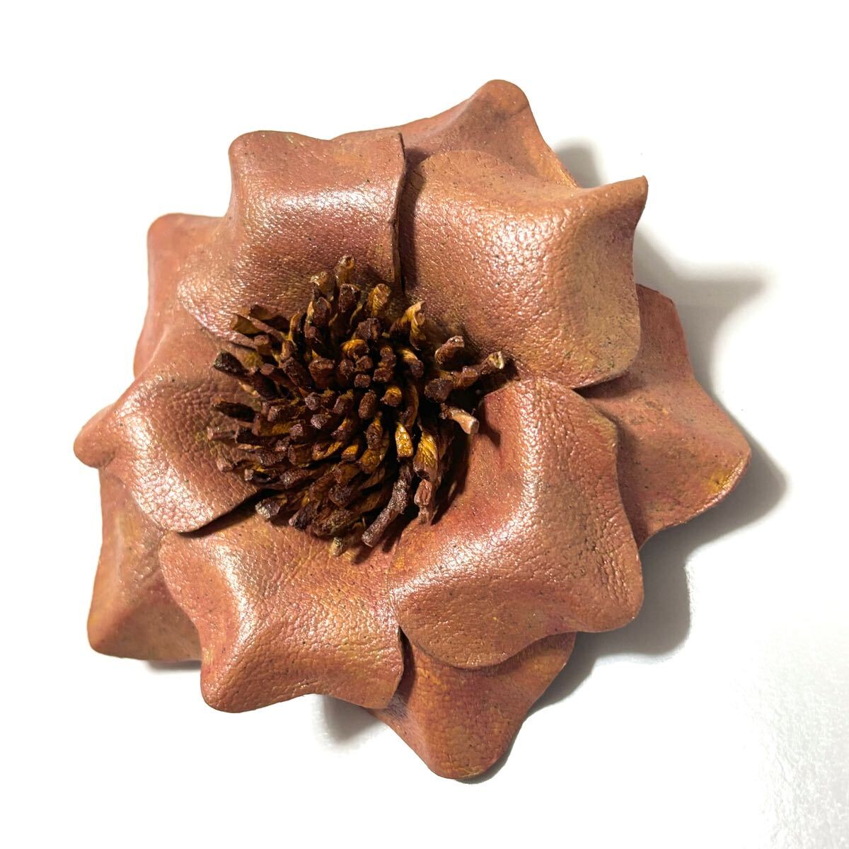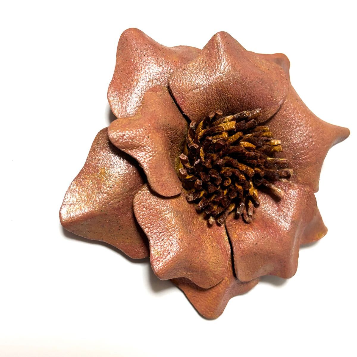 アンティークアクセサリーをイメージした、本革のお花モチーフのブローチ。