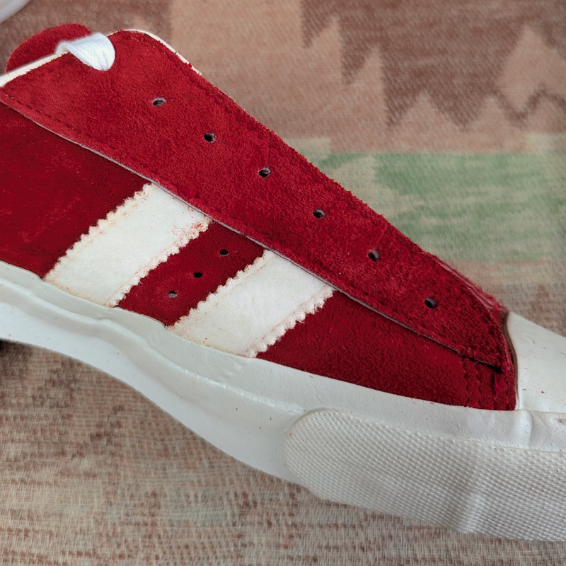 同年代のコンバースだったりナイキだったりと同様の荒い毛羽立ちのスウェードはOLD感たっぷりです。