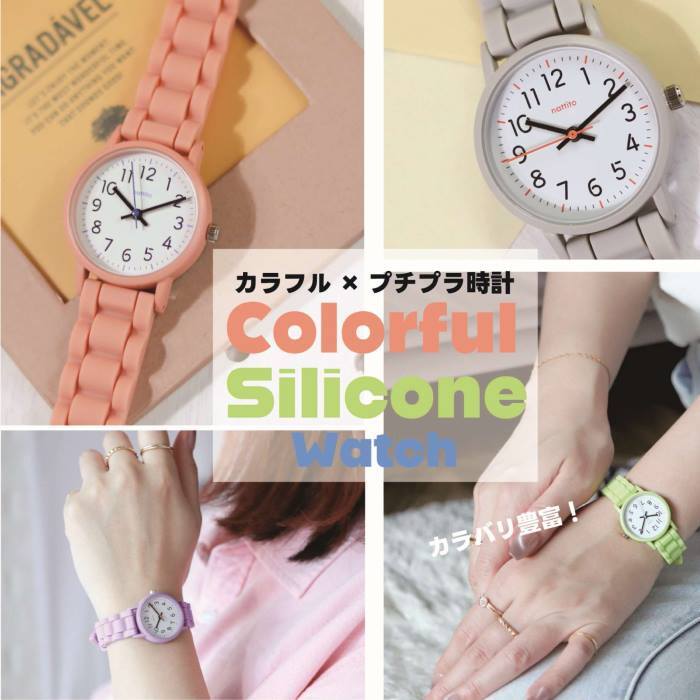 | シリコンのベルトのカラーリングが可愛いデザインのウォッチです♪ シリコンベルトは、柔らかく、絶妙なしっくり・ソフトな感覚で心地良い装着感です♪ カラフルなベルトに、ホワイト文字盤がくっきり、、、時間がはっきり見えます♪ ベルトのデザインから、カジュアル、キッズも対応可能な感じです♪ |