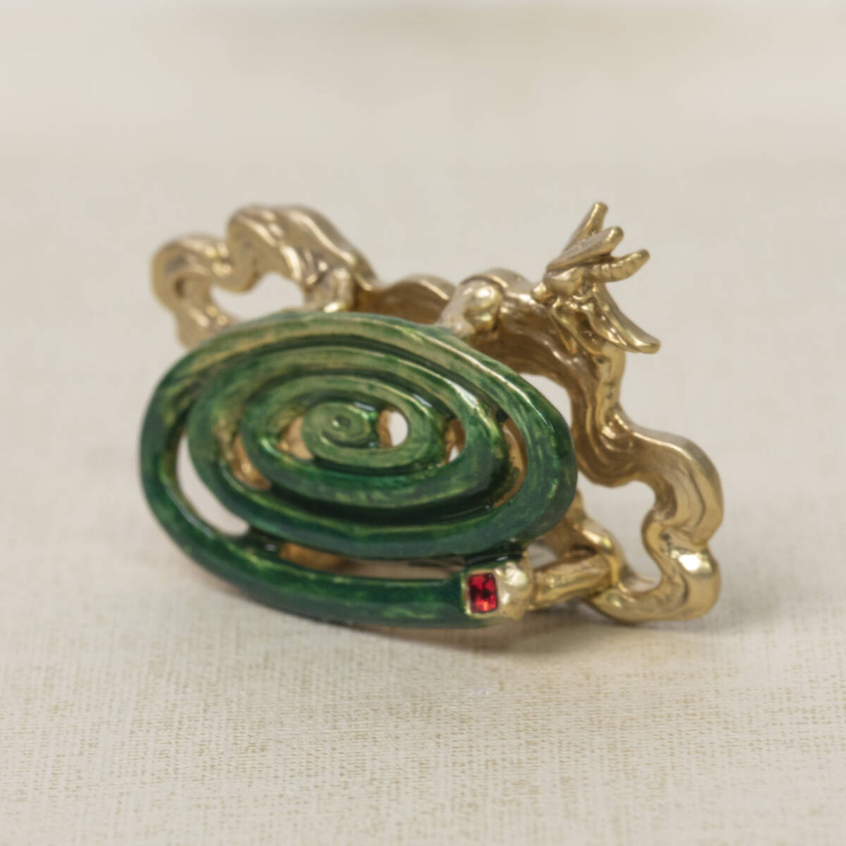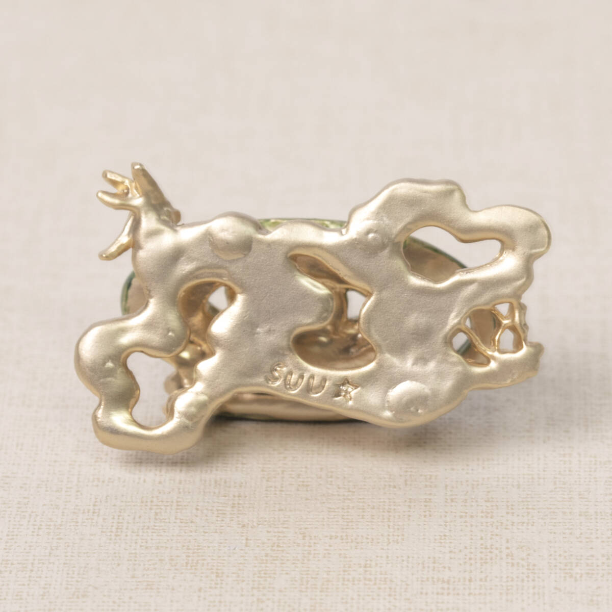 蚊取り線香は真上からではなく斜め上からの角度で造形して、煙の奥行きを出し蚊取り線香周囲の空間を帯留めで表現されています。