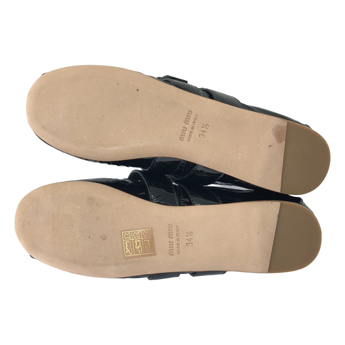 【美品】 miu miu / ミュウミュウ | パテントレザー リボン ダブルストラップ バレエシューズ | 34 1/2 | ブラック | レディース