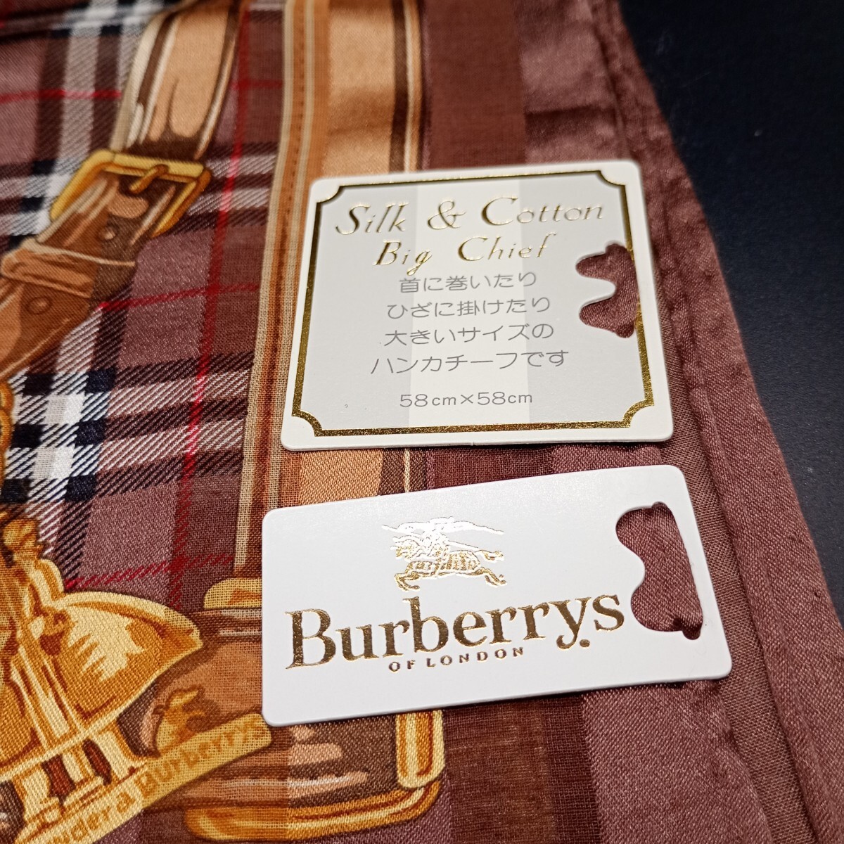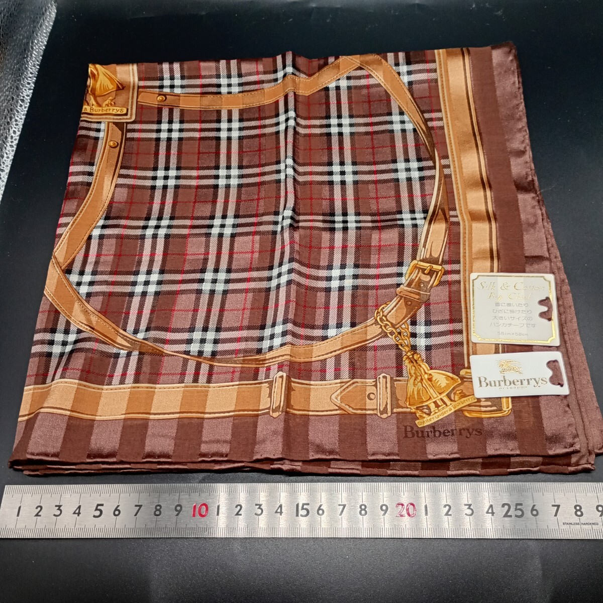 BURBERRYS バーバリー ハンカチ 大判 シルク混 ブラウン チェック no.3020