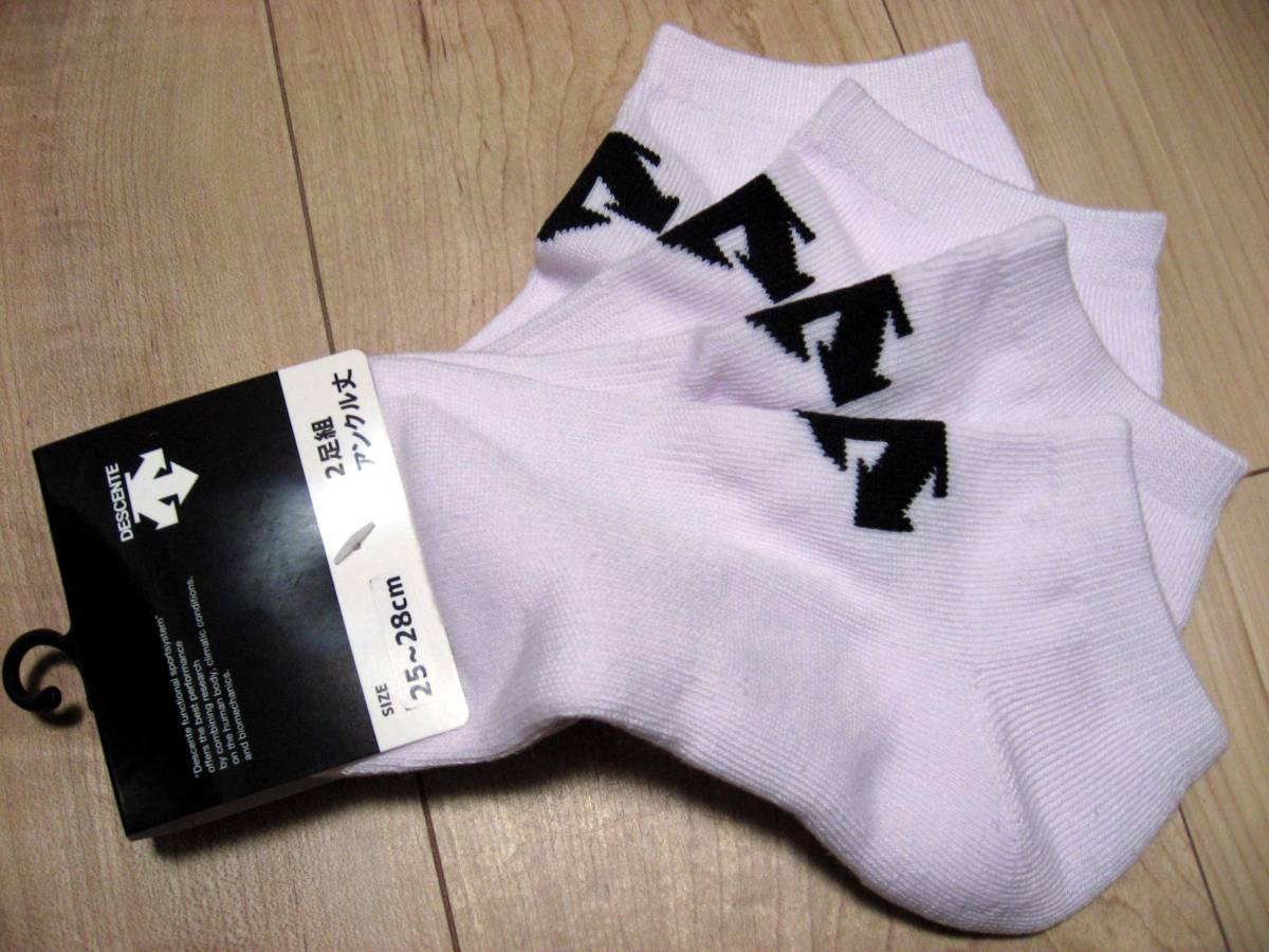 新品【デサント】アンクルソックス 2足組 白 25-28㎝ DVB-9125S2 スポーツソックス メンズ レディース バレーボール ショートソックス