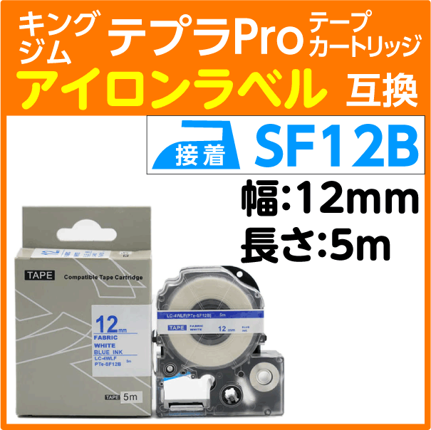 キングジム テプラPro用 互換 テープカートリッジ アイロンラベル SF12B 12mm 白テープ 青文字