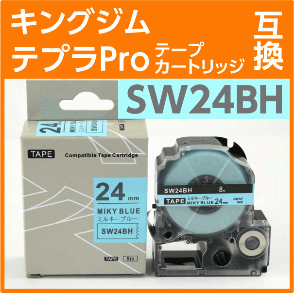 キングジム テプラPro用 互換 テープカートリッジ SW24BH ソフトカラー ミルキーブルー/グレー文字 24mm