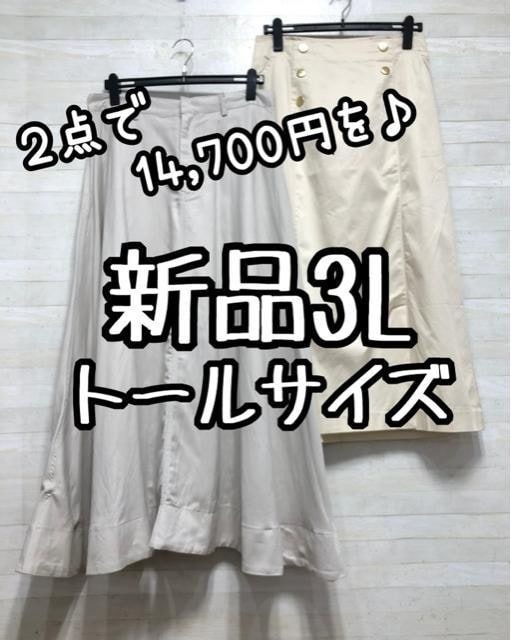 新品☆3Lトールサイズ♪ロングタイトスカート&麻混フレアスカート☆G802