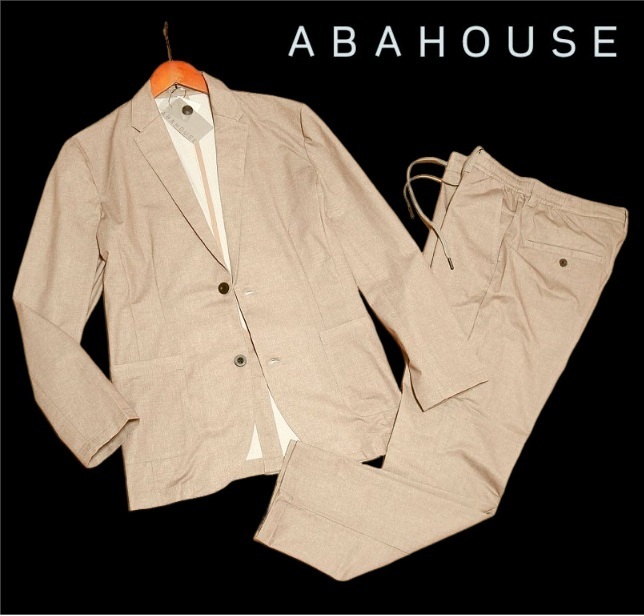 新品!! ABAHOUSE アバハウス メッシュ 柄プリント セットアップ モカ (L) ☆ Air Hole Stretch メンズ 軽量 サマースーツ 薄手 茶 春夏 ★
