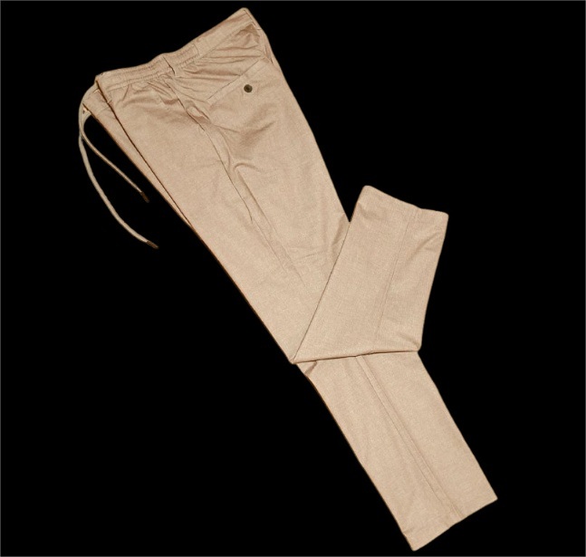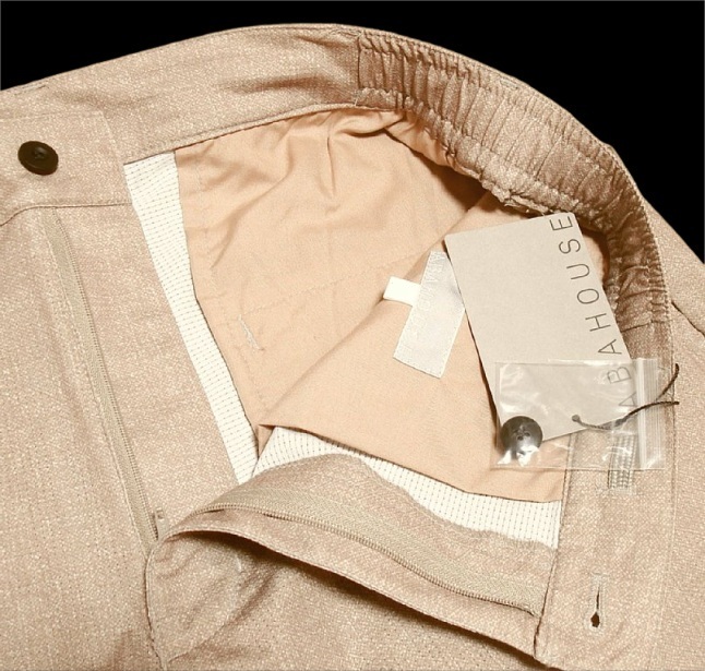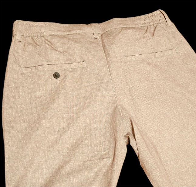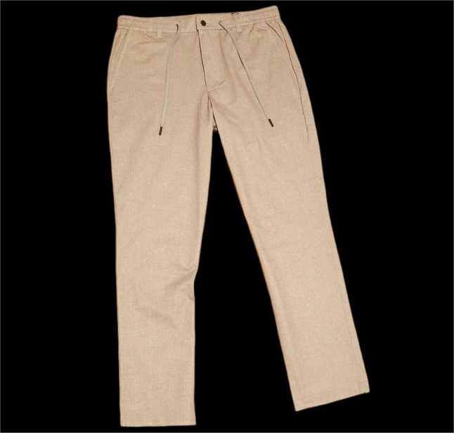 ◎パンツはジップ開閉でボタンは1つ、ウエストは両サイドゴム入り+2WAYドローコード(ベルト使用可能)、前後合わせて計4つポケットがあります。テーパードシルエットです。
