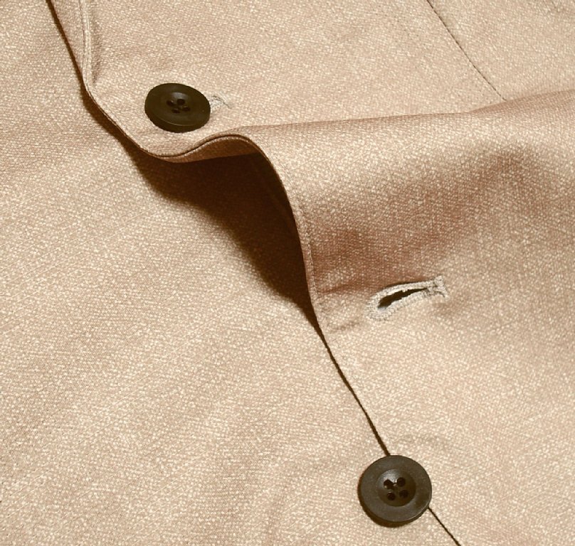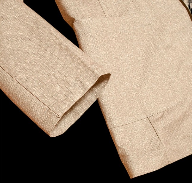 ◎ジャケットはテーラード仕様、フロントボタンは2つ、左右にポケットがあります。バックスタイルはセンターベントとなります。※付属ボタンがあります