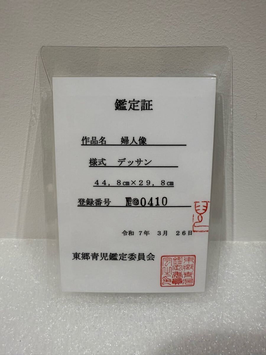 東郷青児 「婦人像」 パステルで描かれた作品 鑑定書付 真作保証 額新品