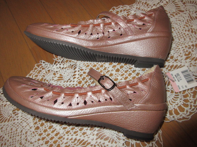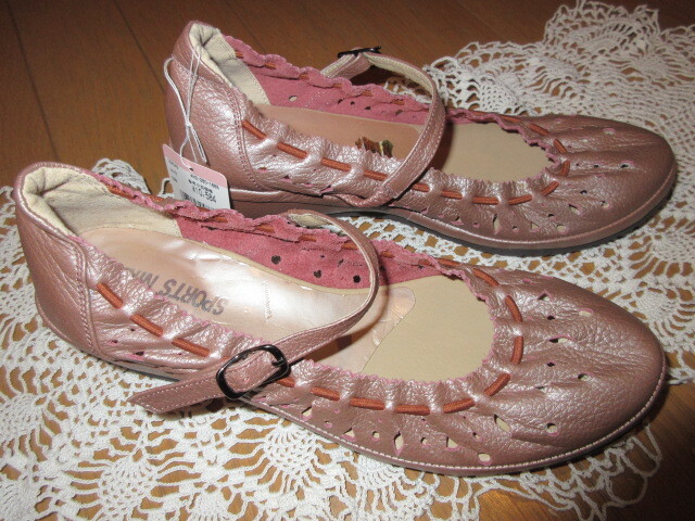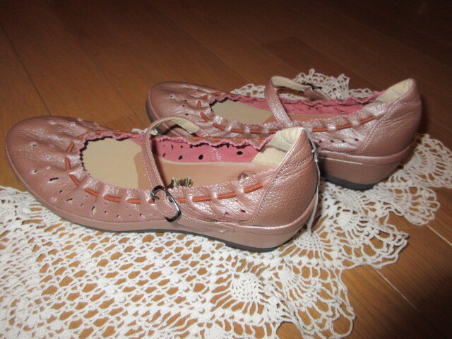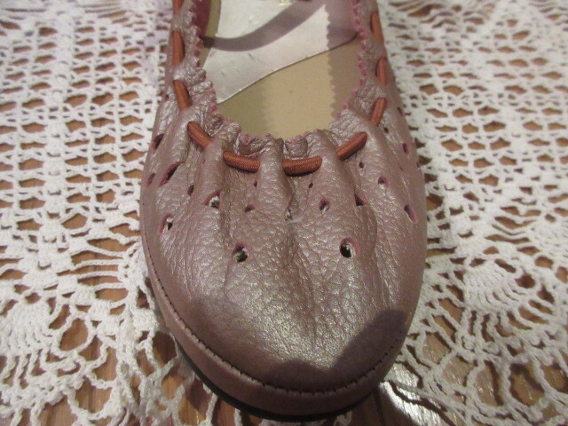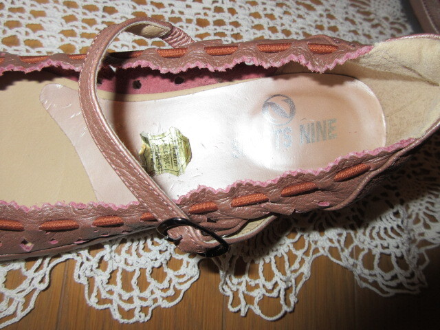 ■タグ付き新品/約1万円■ブランド品■【NINE ナイン】■銀ピンク/本革レザー■レースギャザー!靴ズレ防止!■今季流行バレエシューズ