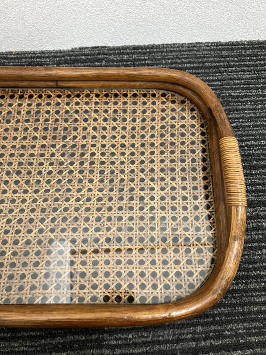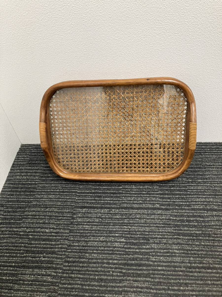 ★昭和レトロ★お盆 ガラス製 ガラストレー トレイ お盆 編み込み 大きめ★