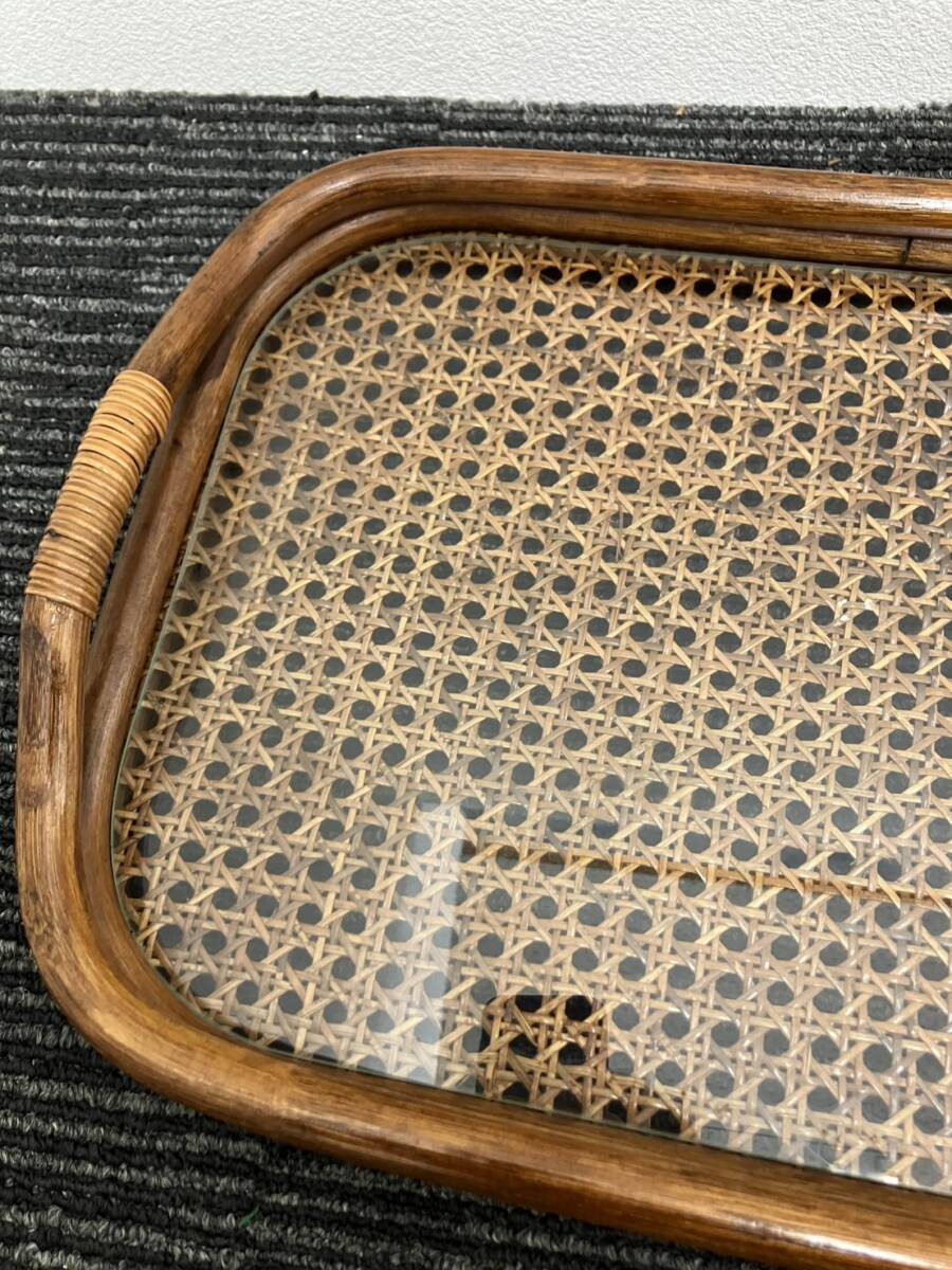 【C】★昭和レトロ★お盆 ガラス製 ガラストレー トレイ お盆 編み込み 大きめ 持ち手付き★