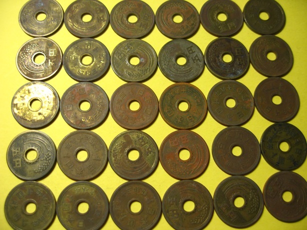 ☆5円黄銅貨 《昭和39年》 30枚  並品~普通品