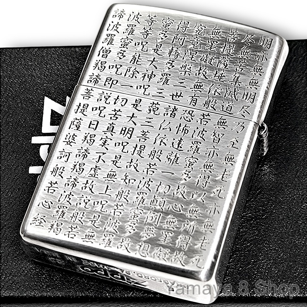 仏教の経典である般若心経を両面に彫りデザインしたZIPPOライターです