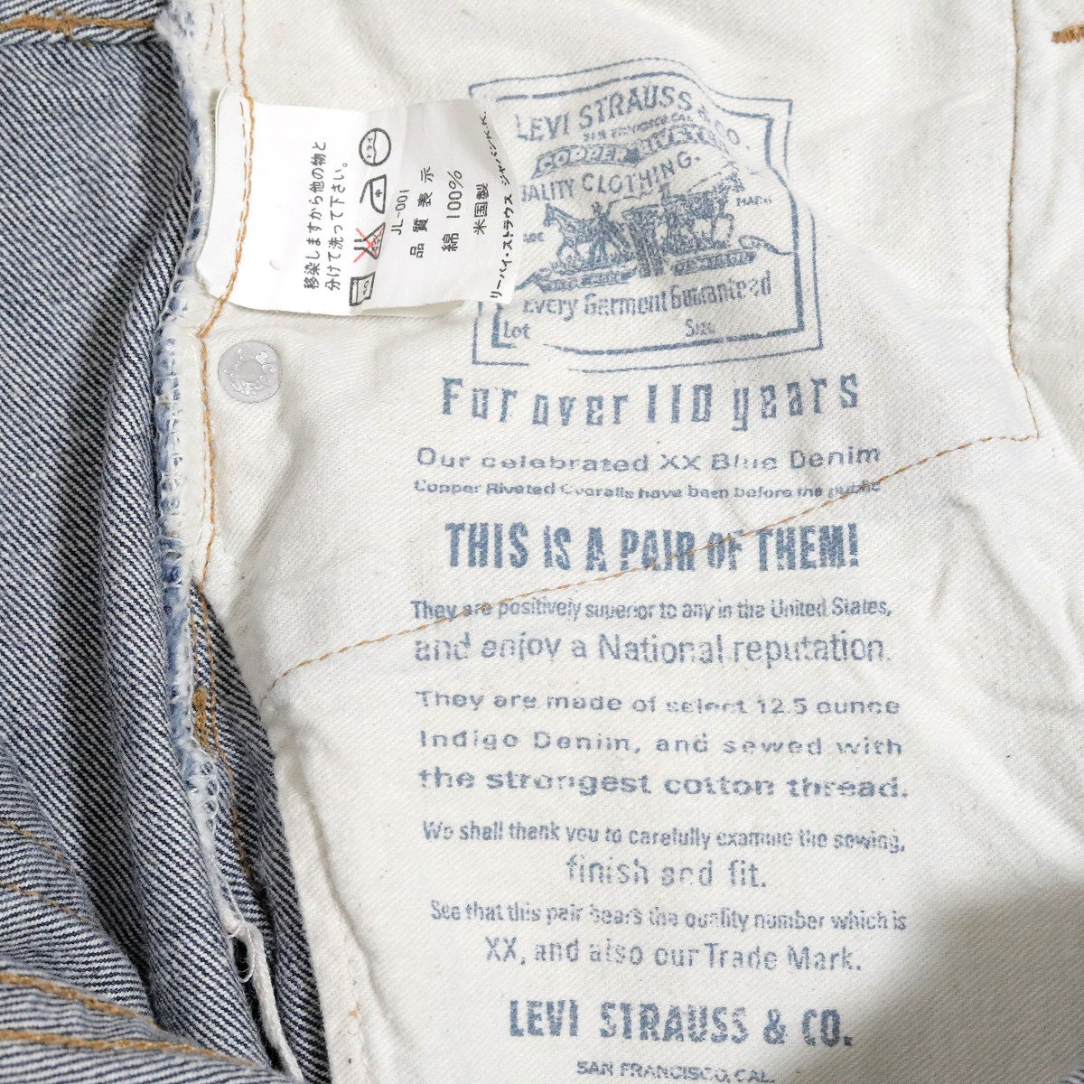 1993年製、米国製(バレンシア工場生産)、5ポケット、ボタンフライ、紙パッチ、110周年記念スタンプ、両面ビッグE赤タブ、裾シングル、セルビッチ、トップボタン裏刻印555。