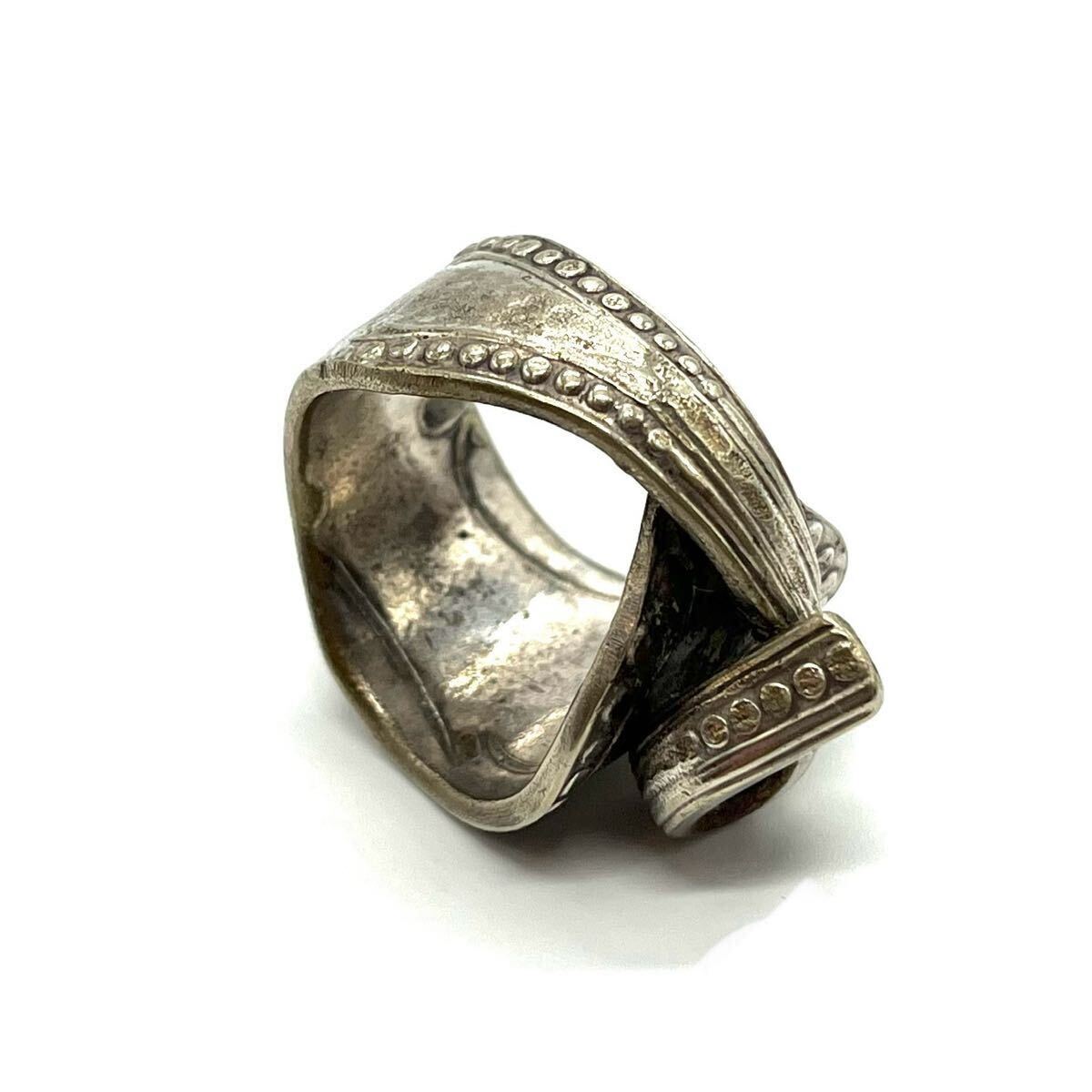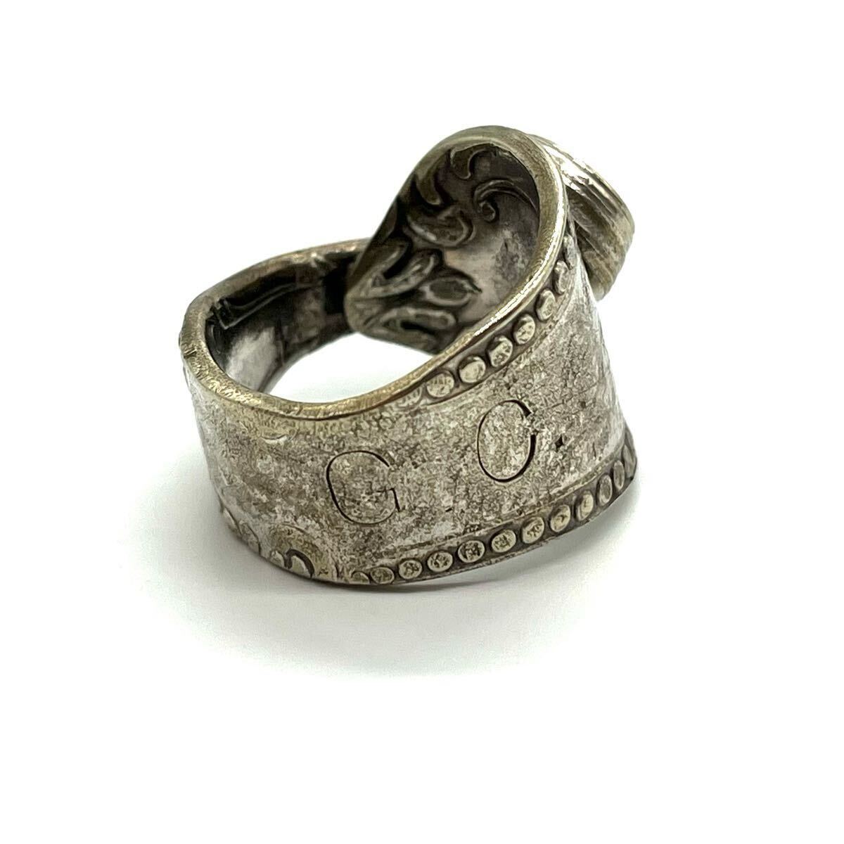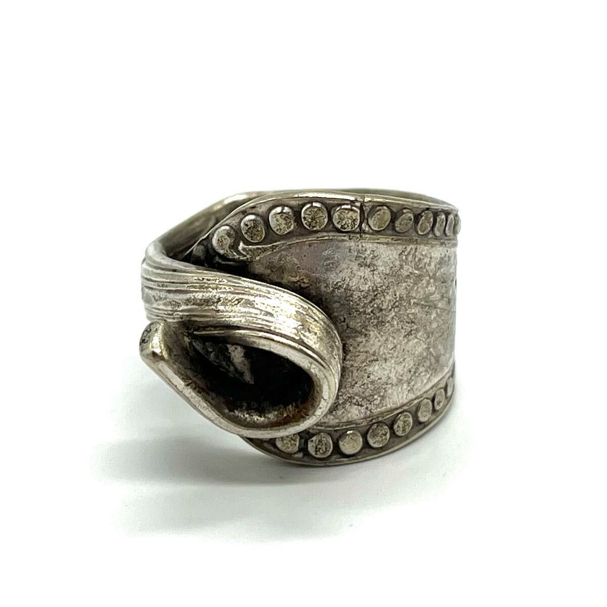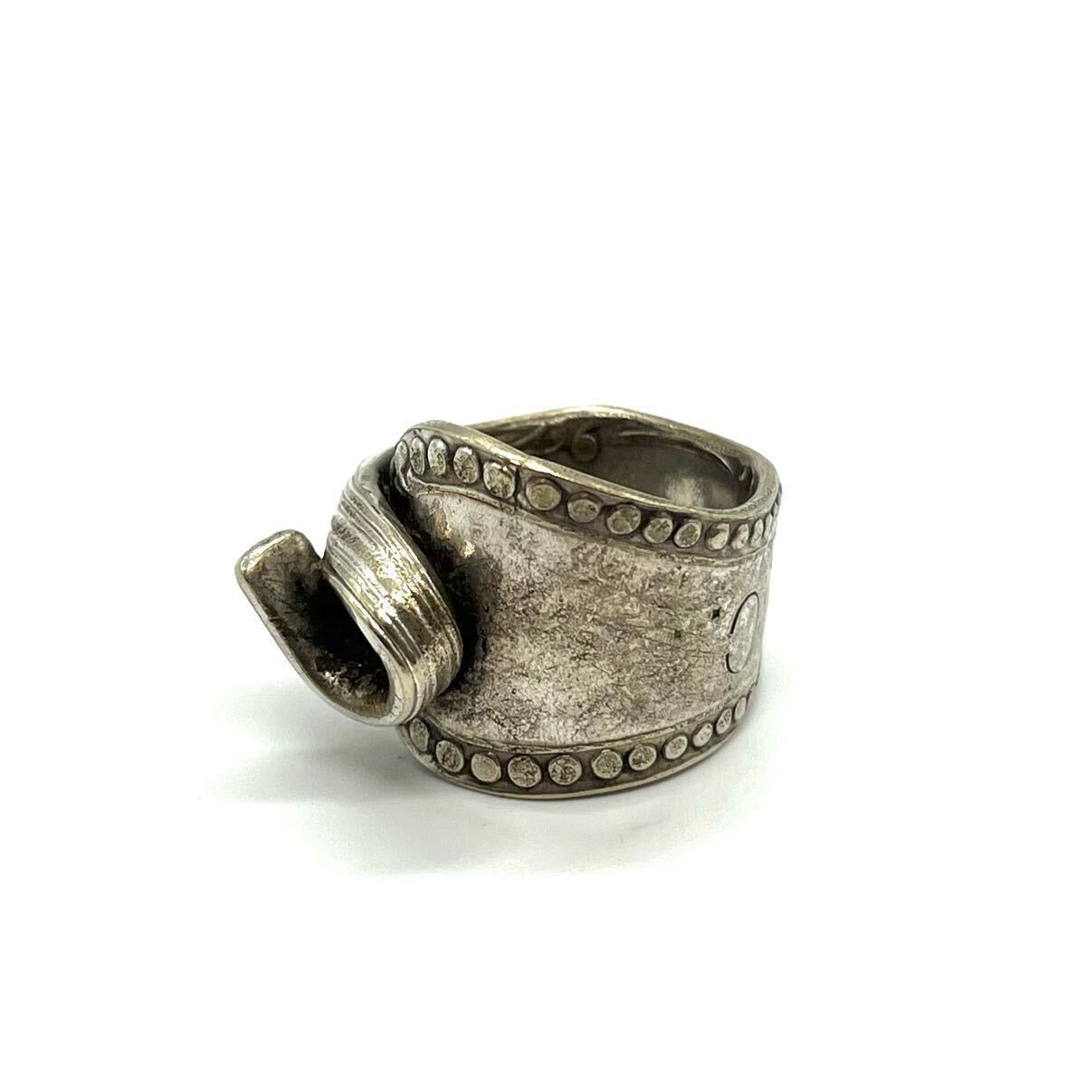 丁寧に製作された銀食器から作られたリングは存在感があり、エレガントな印象を与えてくれます。