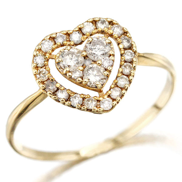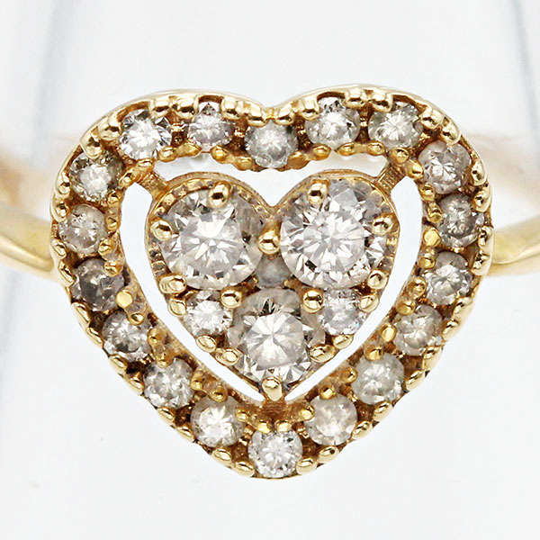 K18YG ハートモチーフ ダイヤモンド リング 9号 D0.25ct ゴールド 指輪 アクセサリー 女性 レディース 誕生日 プレゼント