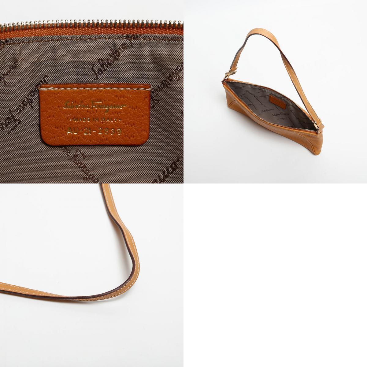 極美品 Salvatore Ferragamo レザー ショルダーバッグ ブラウン