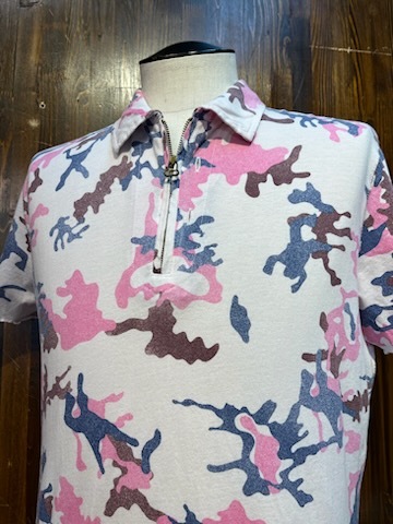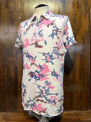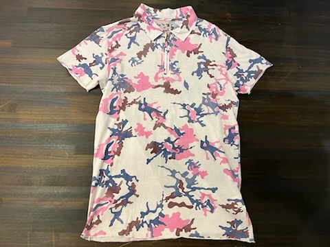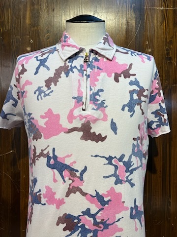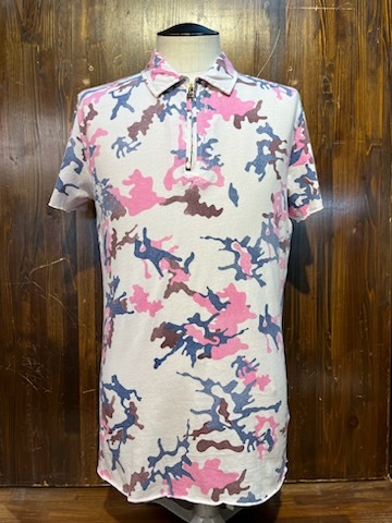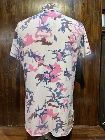 L299 メンズ ポロ シャツ DIESEL ディーゼル 半袖 ピンク 迷彩 カモフラージュ 柄 個性的 薄手 / M 全国レターパック配送
