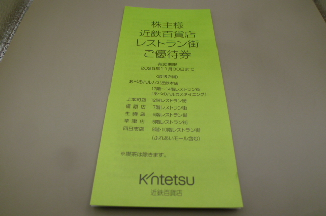 最新 近鉄百貨店 株主優待 レストラン街 ご優待券 10枚 有効期限:2025年11月30日 ミニレター送料無料