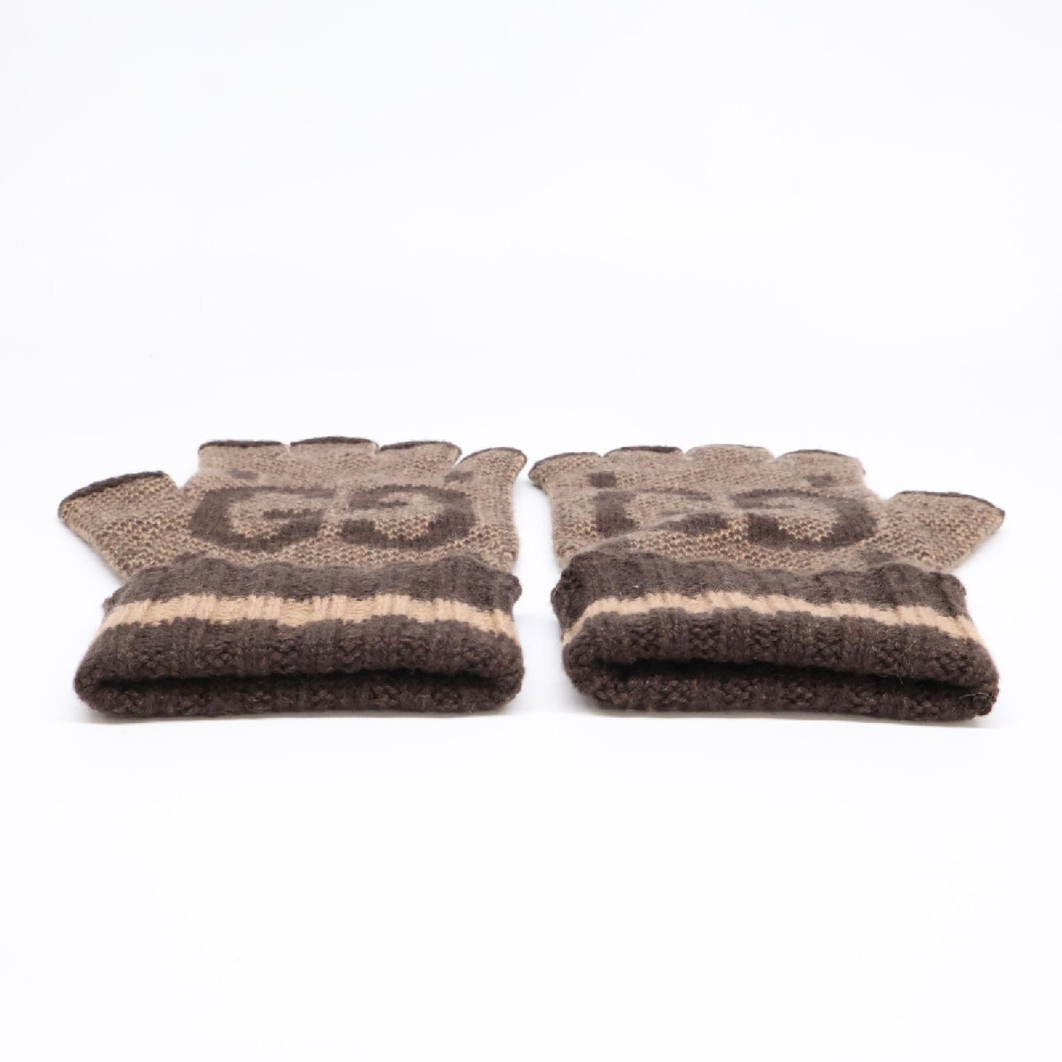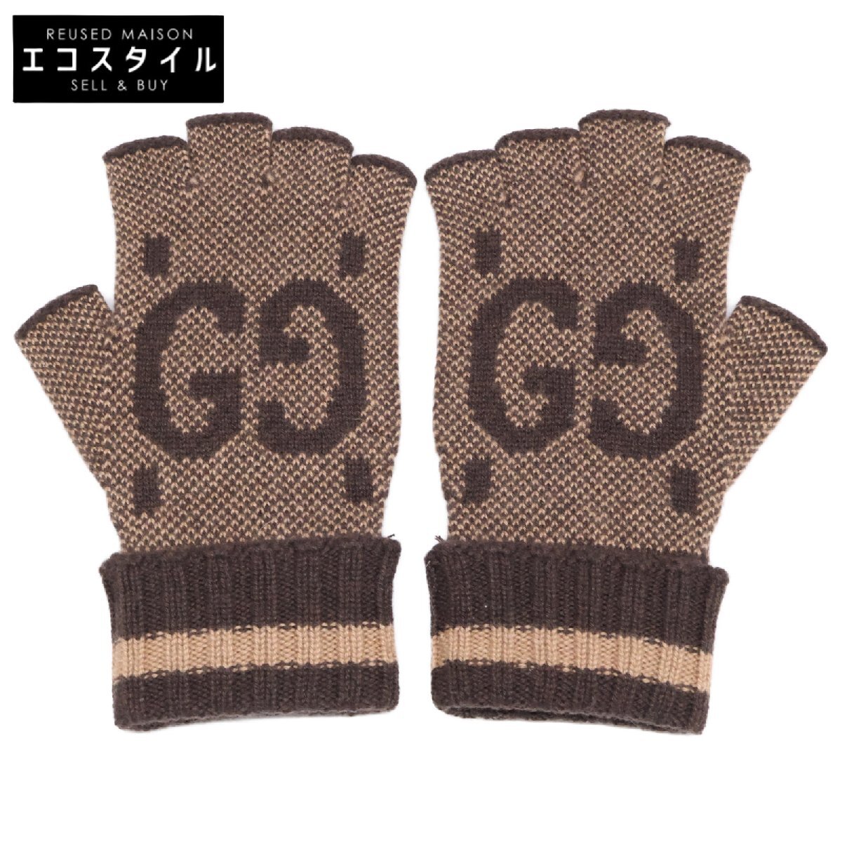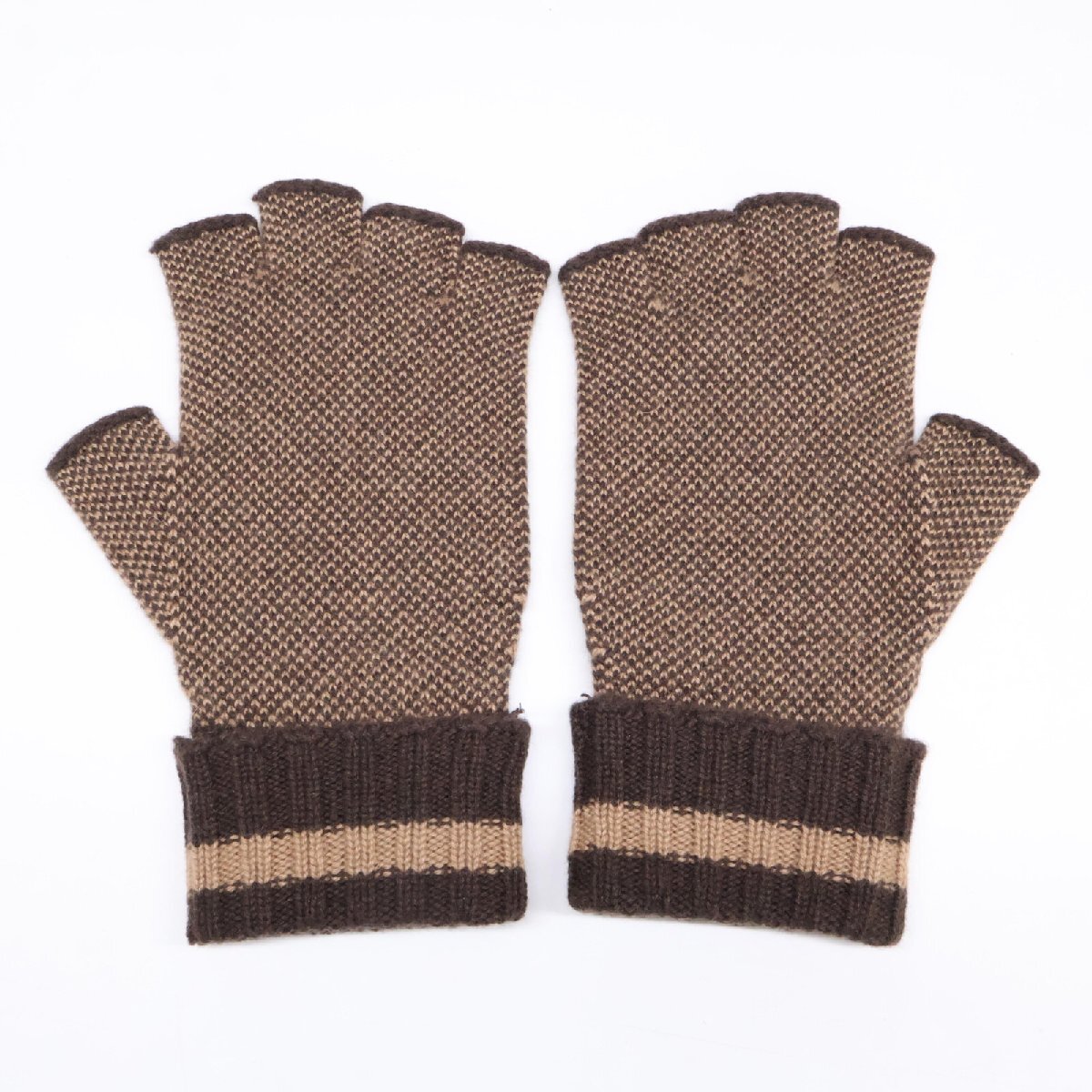 美品 GUCCI グッチ 726586 3G344 フィンガーレス カシミヤ 手袋 / グローブ M 21.5cm ブラウン メンズ