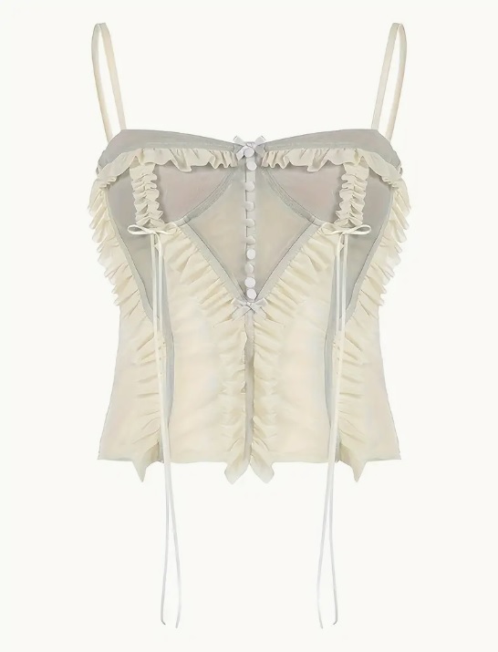 y2k、韓国ストリート、フェアリーグランジが好きな人におすすめの【Fairy Grunge Ruched Camisole(フェアリーグランジシャーリングキャミソール)】です!