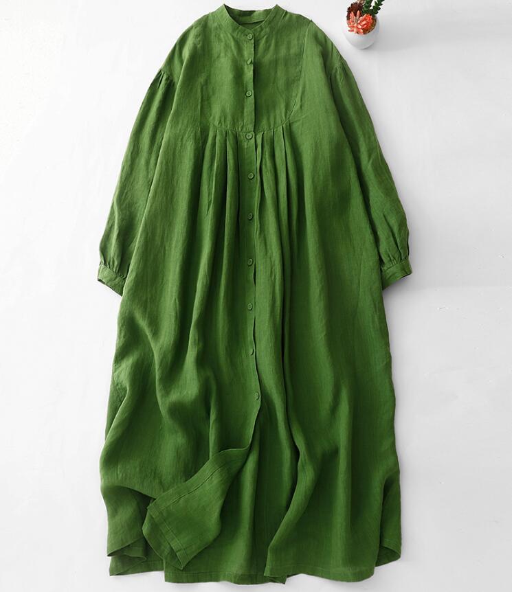 M-2XL選ぶ 秋新作 ~ カジュアル シャツワンピース 楽ちん 大人 長袖 ロング丈ワンピース 大きいサイズ 綿麻 リネン風 マキシワンピース ~
