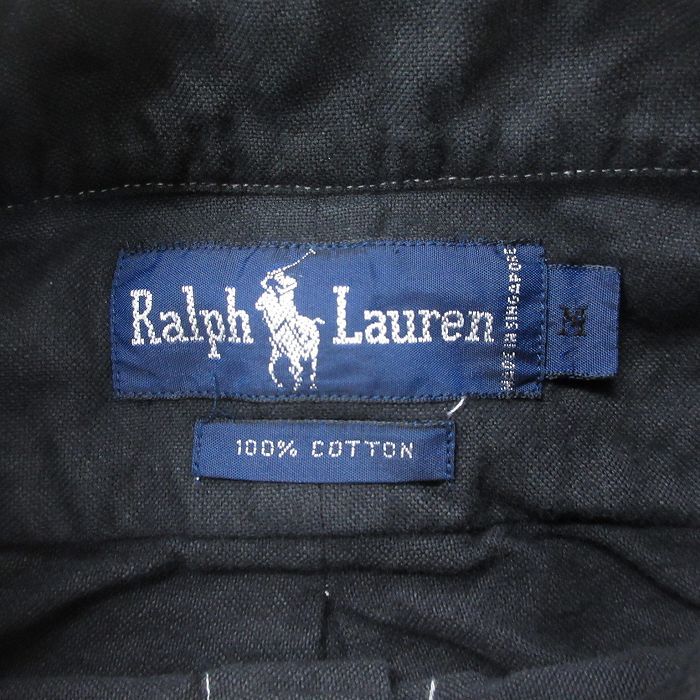 【商品名】 XL★古着 ラルフローレン 長袖 ブランド シャツ メンズ 90年代 90s ワンポイントロゴ オックスフォード ロング丈 コットン ボタンダウン 黒