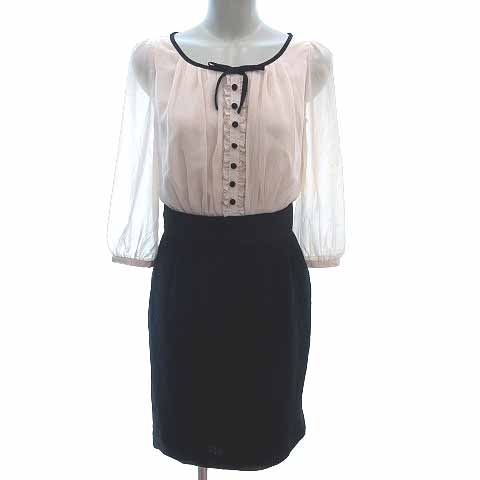 デビュー ド フィオレ Debut de Fiore by LAISSE PASSE ワンピース ミニ ドッキング シフォン ウール 36 S ベージュ 黒 レディース